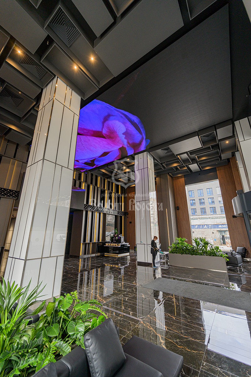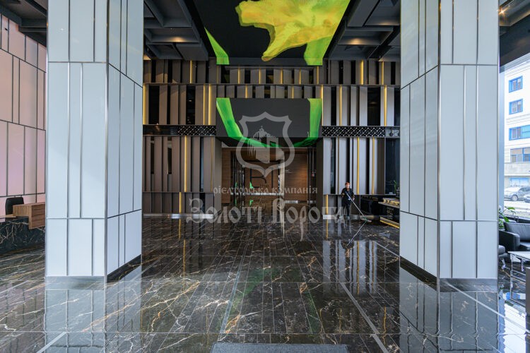 Просторе лобі з голографічною стелею та стильні зони загального користування з авторським дизайном. У бізнес-центрі дотримано баланс між work та лаунж-зонами, створено інноваційне середовище для роботи та бізнесу.