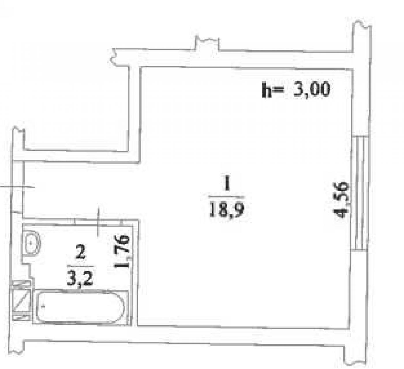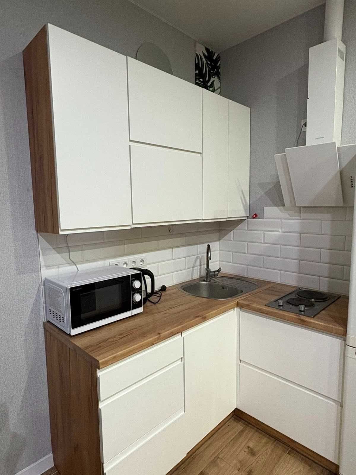 Загальна площа — 22 м², кухня — 10 м². Висота стелі — 3 метри, що додає простору навіть у компактному форматі.