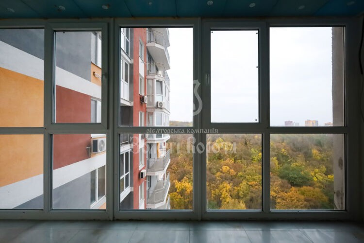 Оселя розташована на 17 поверсі 27-поверхового будинку, з панорамними вікнами, що відкривають краєвид на ліс і зелену зону.
