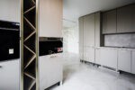 Кухня укомплектована технікою бренду Whirlpool: духова шафа, мікрохвильова піч, індукційна плита, вбудовані холодильник, витяжка, посудомийна машина.