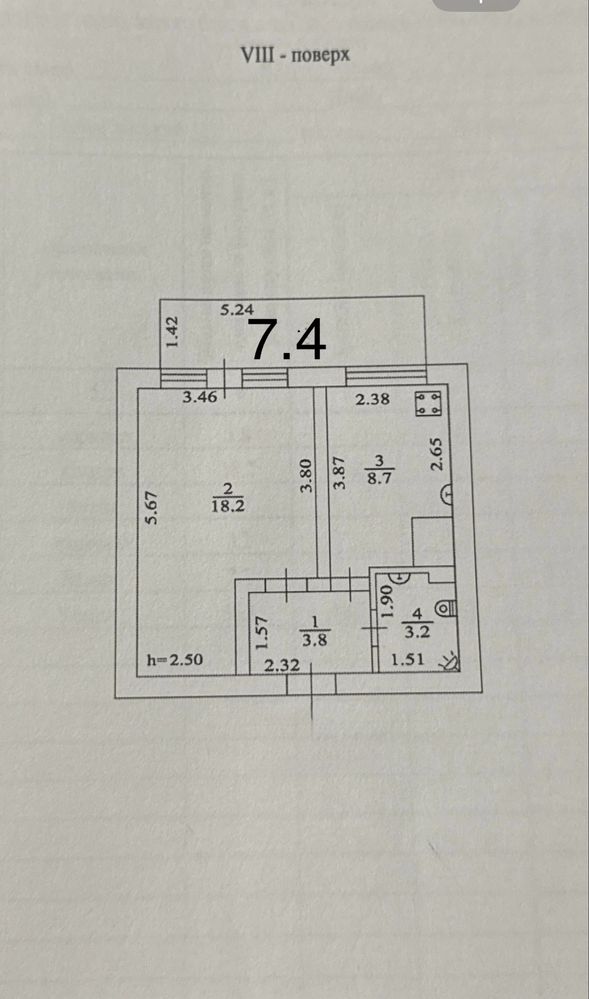 Помешкання знаходиться на 8 поверсі 14-поверхового будинку. Площа спальні складає 18,2 м², кухня — 8,7 м², коридор — 3,8 м², санвузол — 3,2 м², а лоджія — 7,4 м². В оселі виконаний свіжий якісний ремонт.