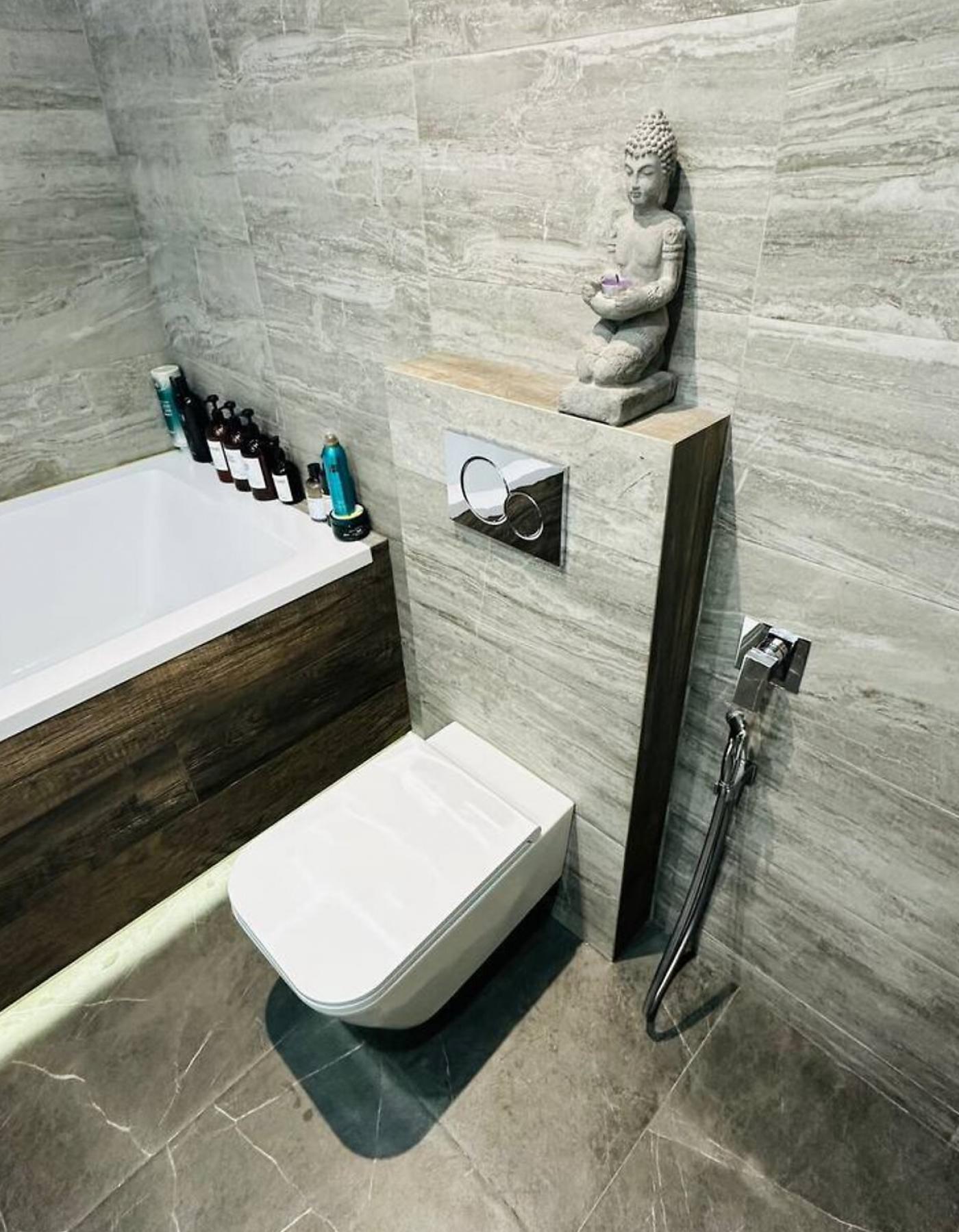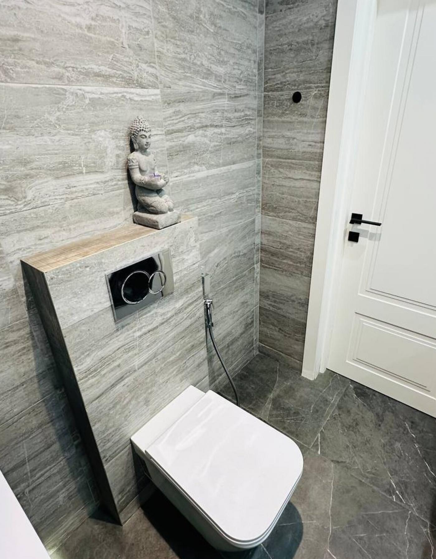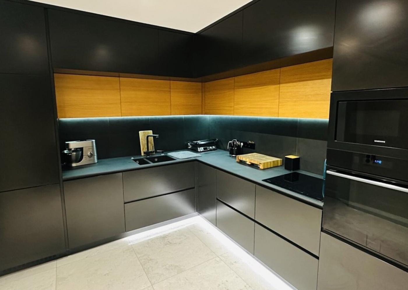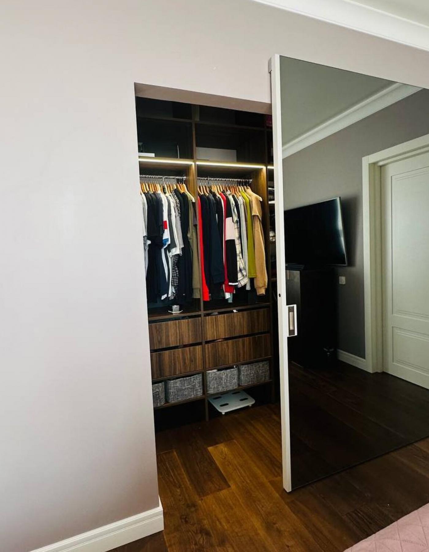 LED-підсвітка в кожній зоні, вологостійкі поверхні Egger, німецькі розетки Hager Berker, міжкімнатні двері Rodos з прихованим монтажем — усе створює атмосферу стилю, тепла і технологічного комфорту.