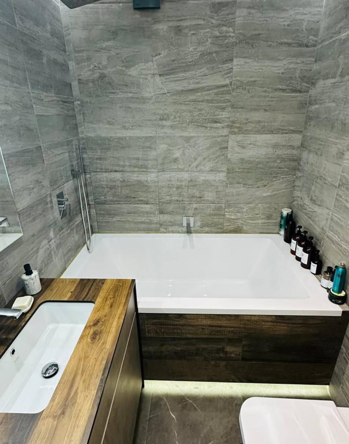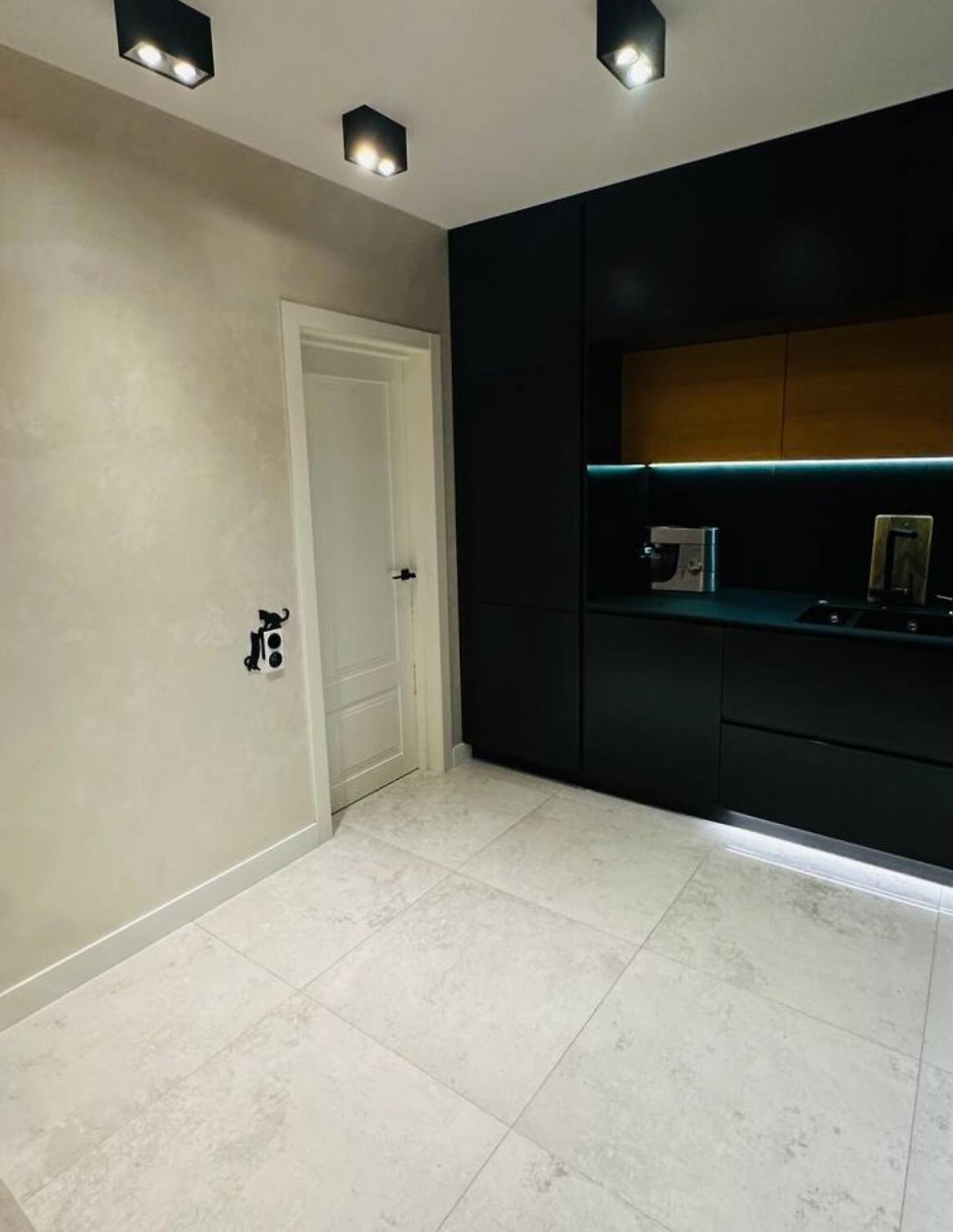 Ремонт виконано за авторським проєктом із використанням преміальних матеріалів: паркетна дошка, іспанська плитка з підігрівом, кухня Anova з керамогранітною стільницею Laminam, сантехніка Ponsі та ванна Tresse з Італії.