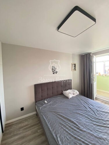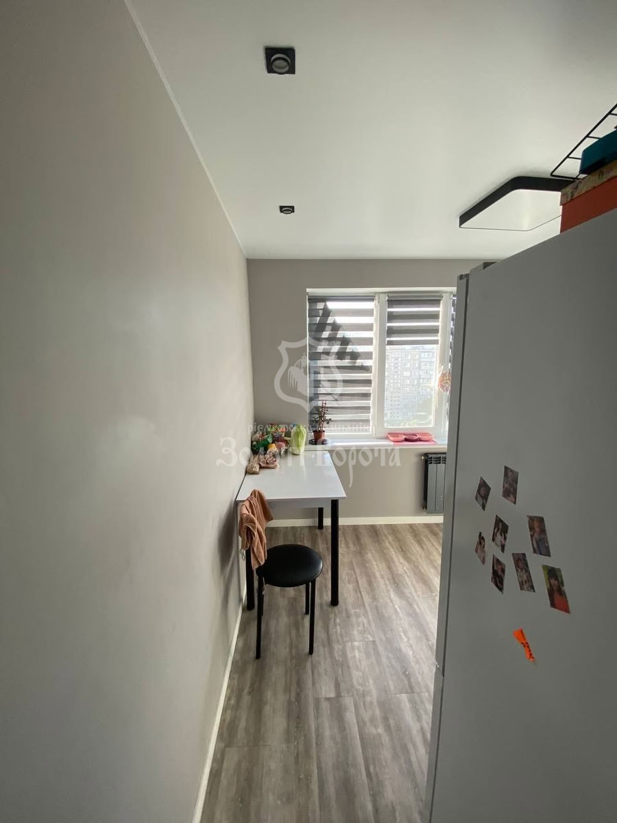 Квартира знаходиться на 9 поверсі 9-поверхового будинку. Стан відповідає фото: ремонт, як на фото. В оселі встановлені металопластикові вікна, на підлозі укладений ламінат, а стелі — натяжні матові.