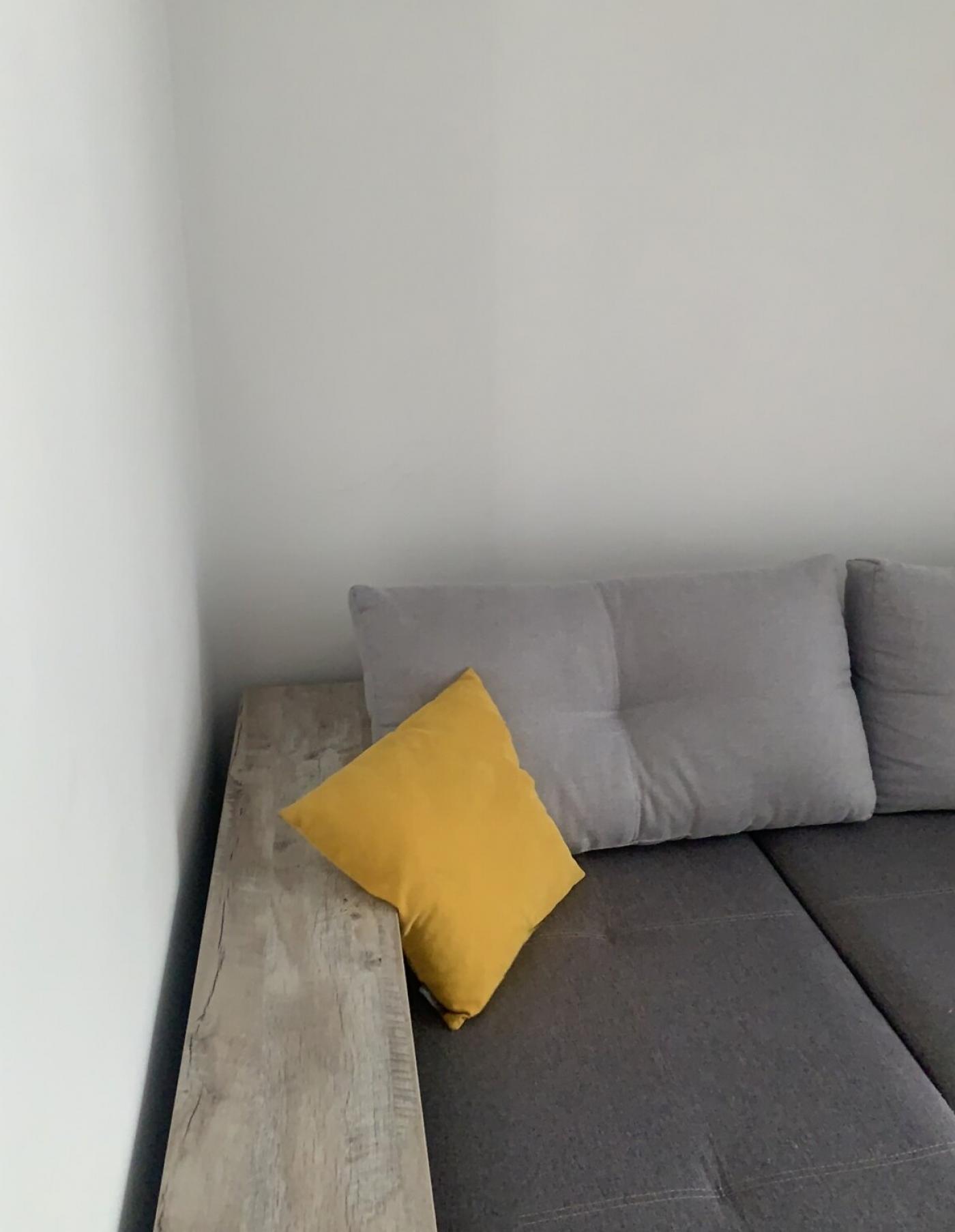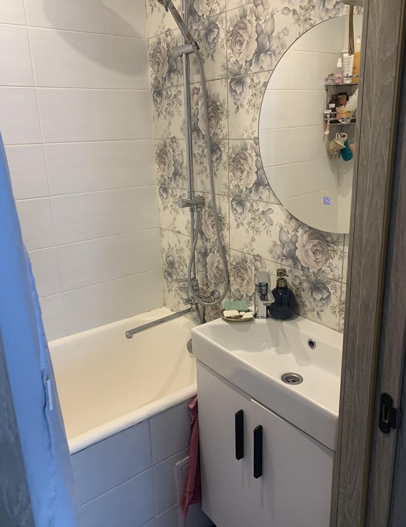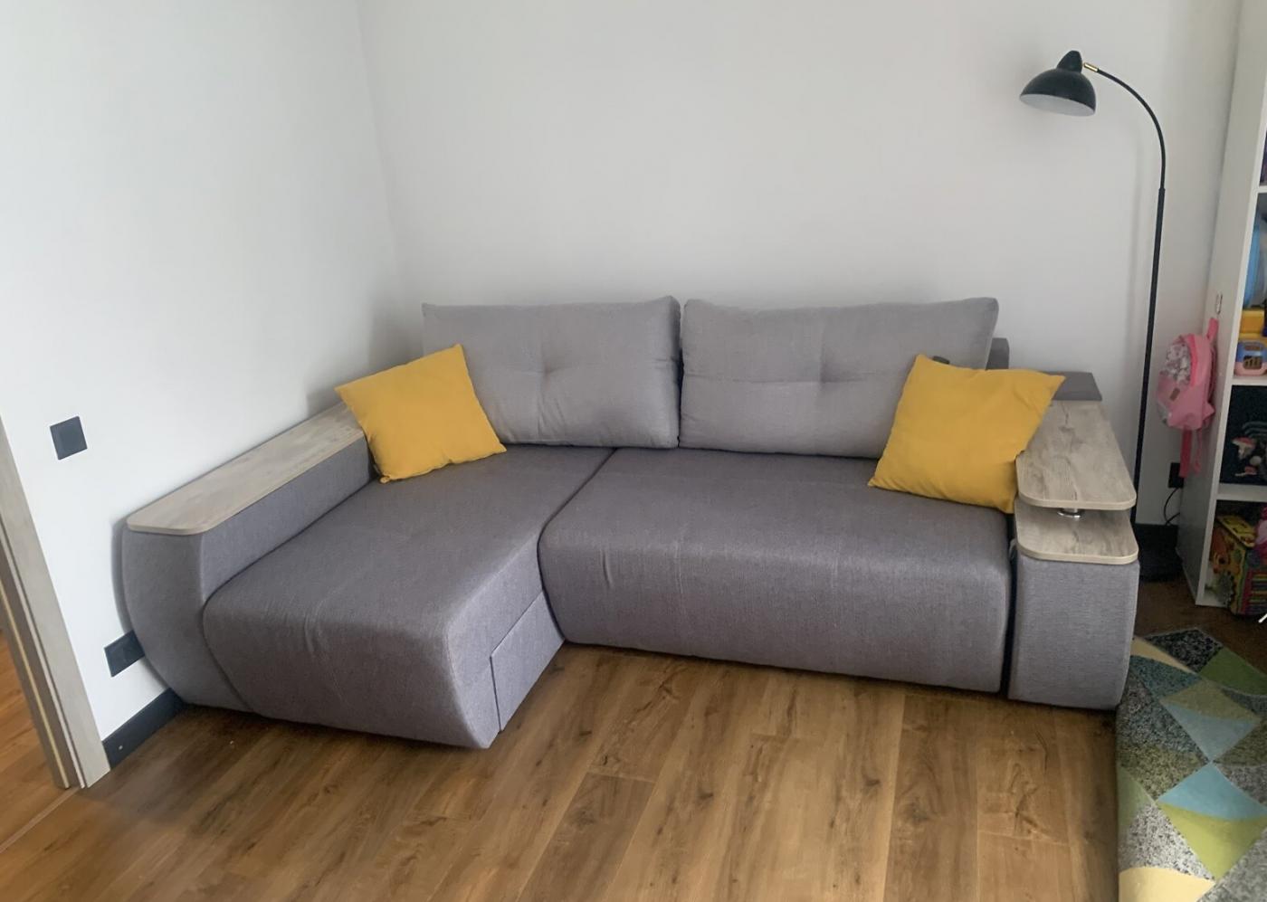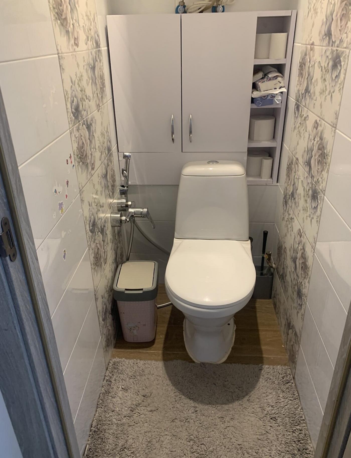 На підлозі у кімнатах покладено ламінат, а роздільний санвузол із ванною оздоблений сучасною плиткою. Квартира обладнана сучасними меблями.