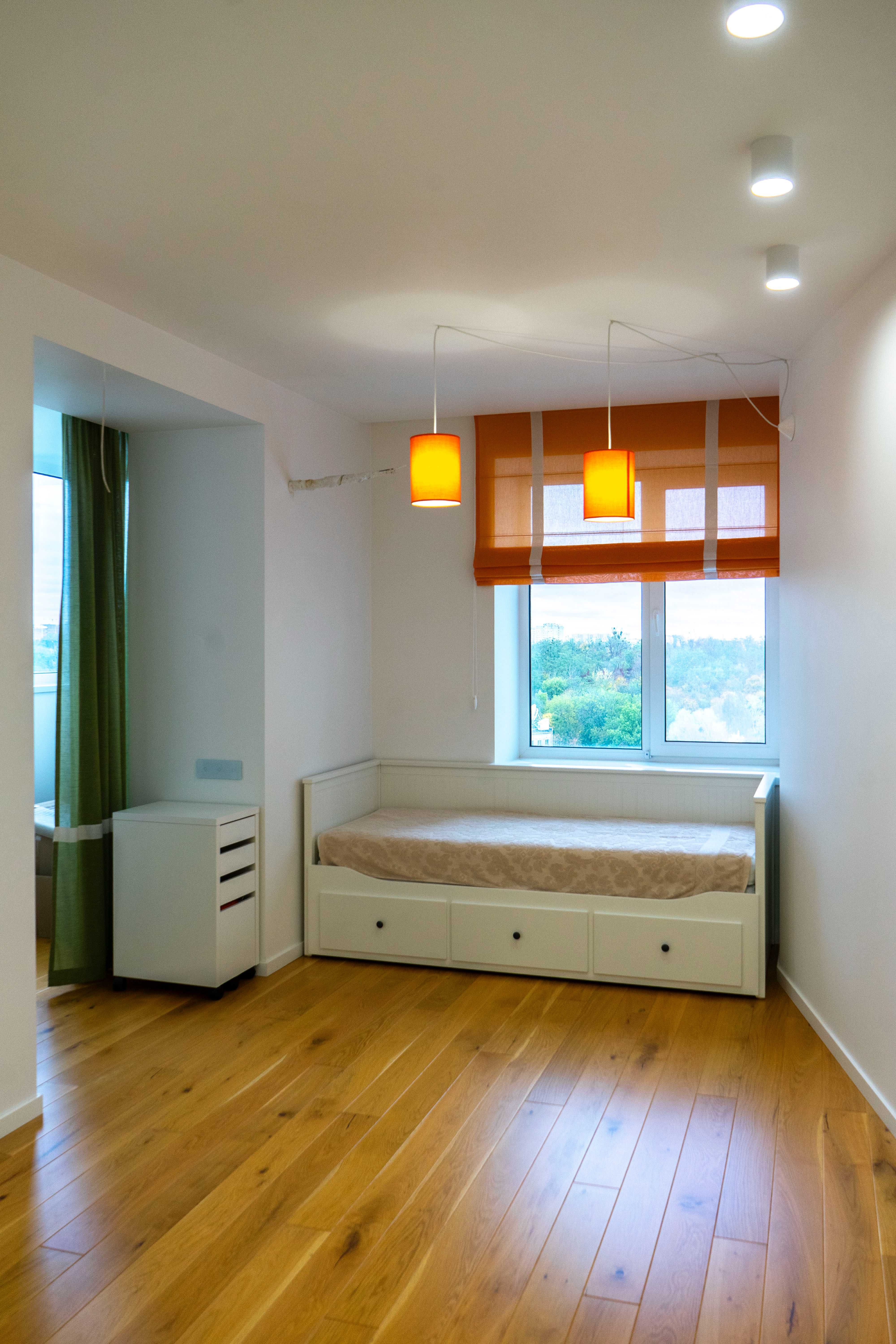 Вітальня готова до облаштування домашнього кінотеатру, а з дитячої кімнати та спальні відкривається приємний вид на парк.