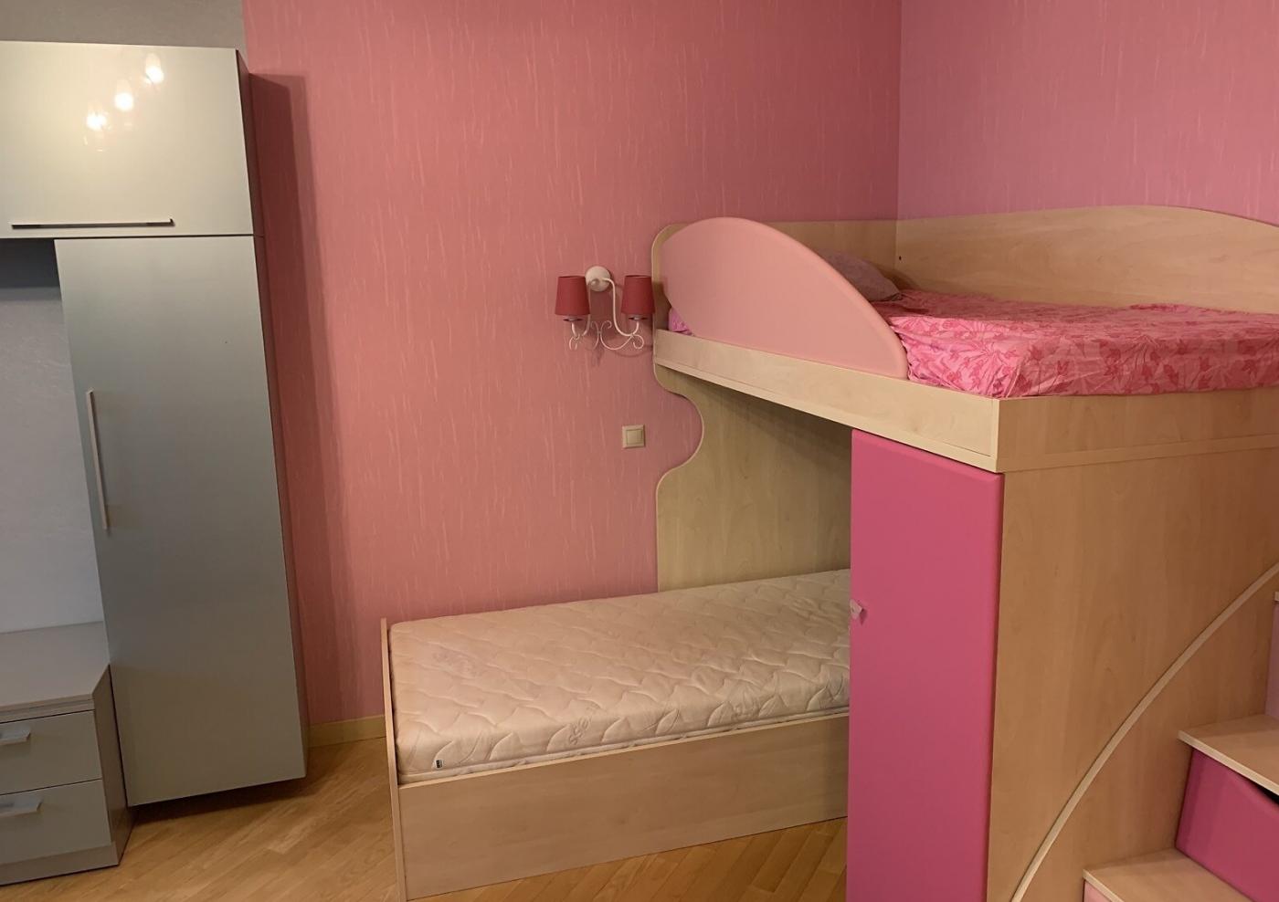 Простора кухня-вітальня (33 м2) поєднує функціональність і затишок, спальня — 14 м2, дитяча кімната — 19 м2, облаштована для комфортного проживання двох школярів.