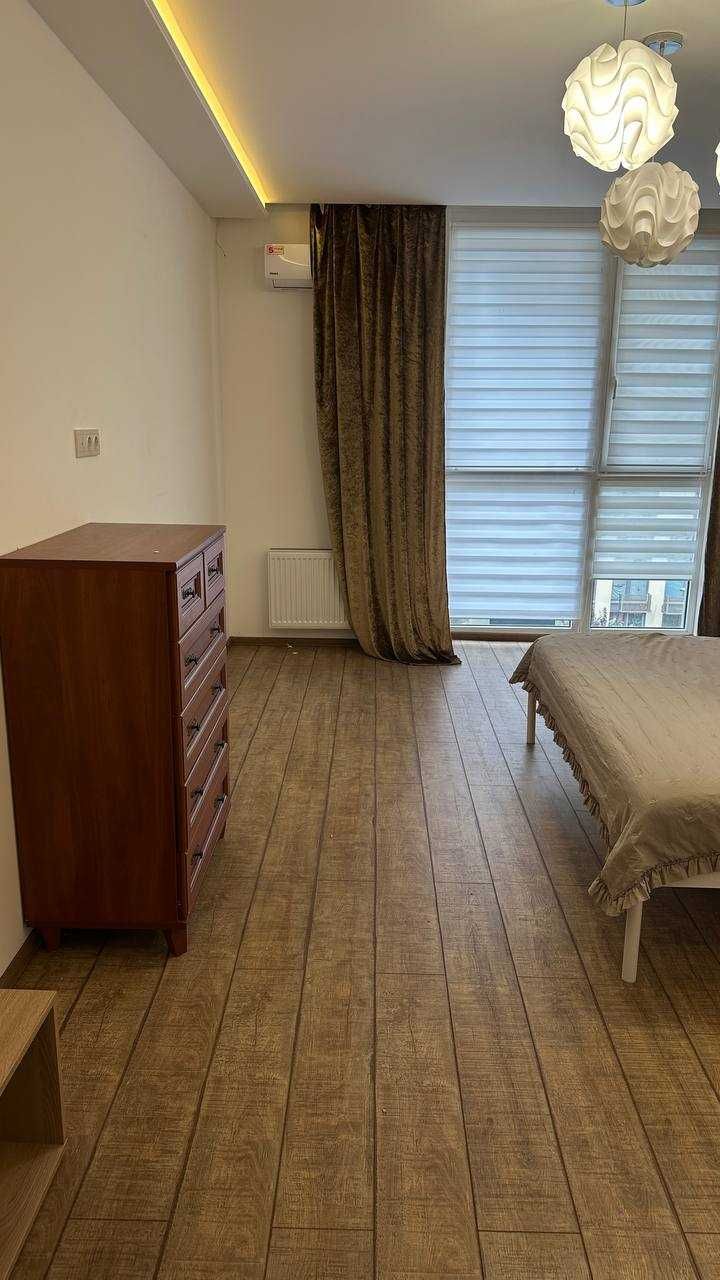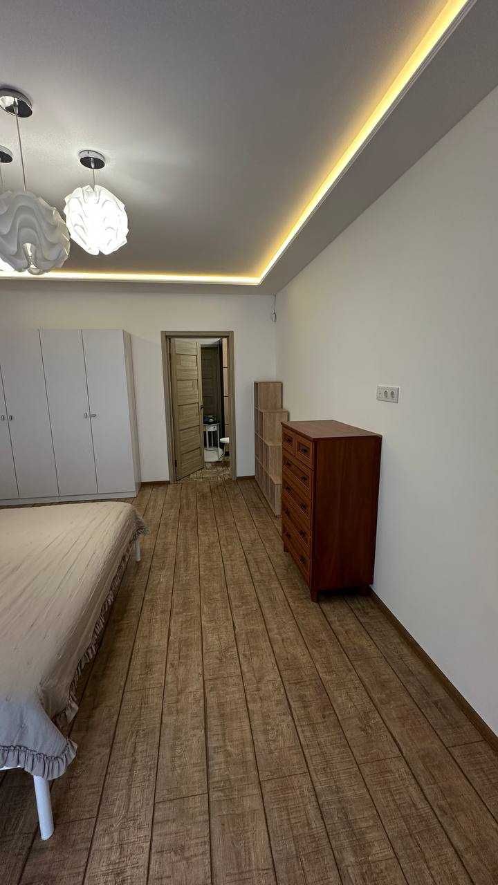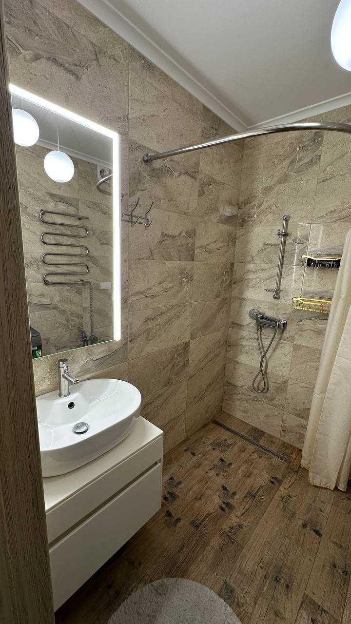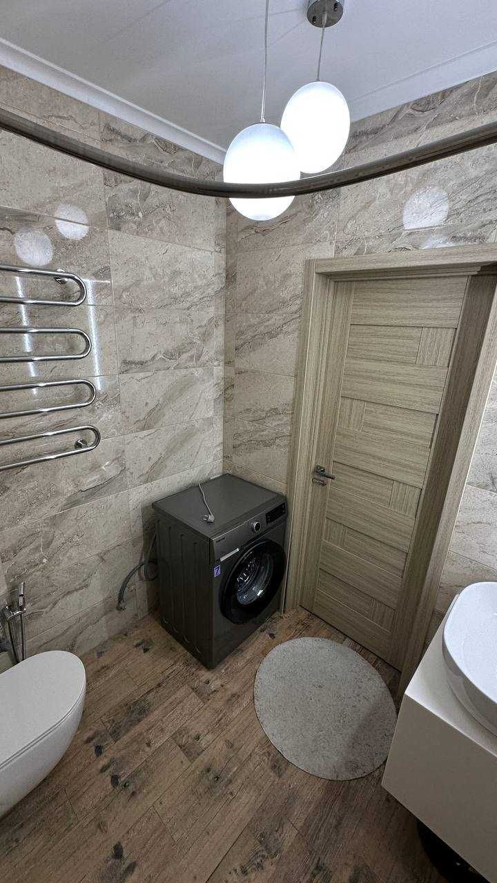 У квартирі виконано якісний ремонт: стіни поштукатурені, стелі — гіпсокартон, на підлозі — плитка. Є дві ванні кімнати, бойлери встановлені у ванній та на кухні.