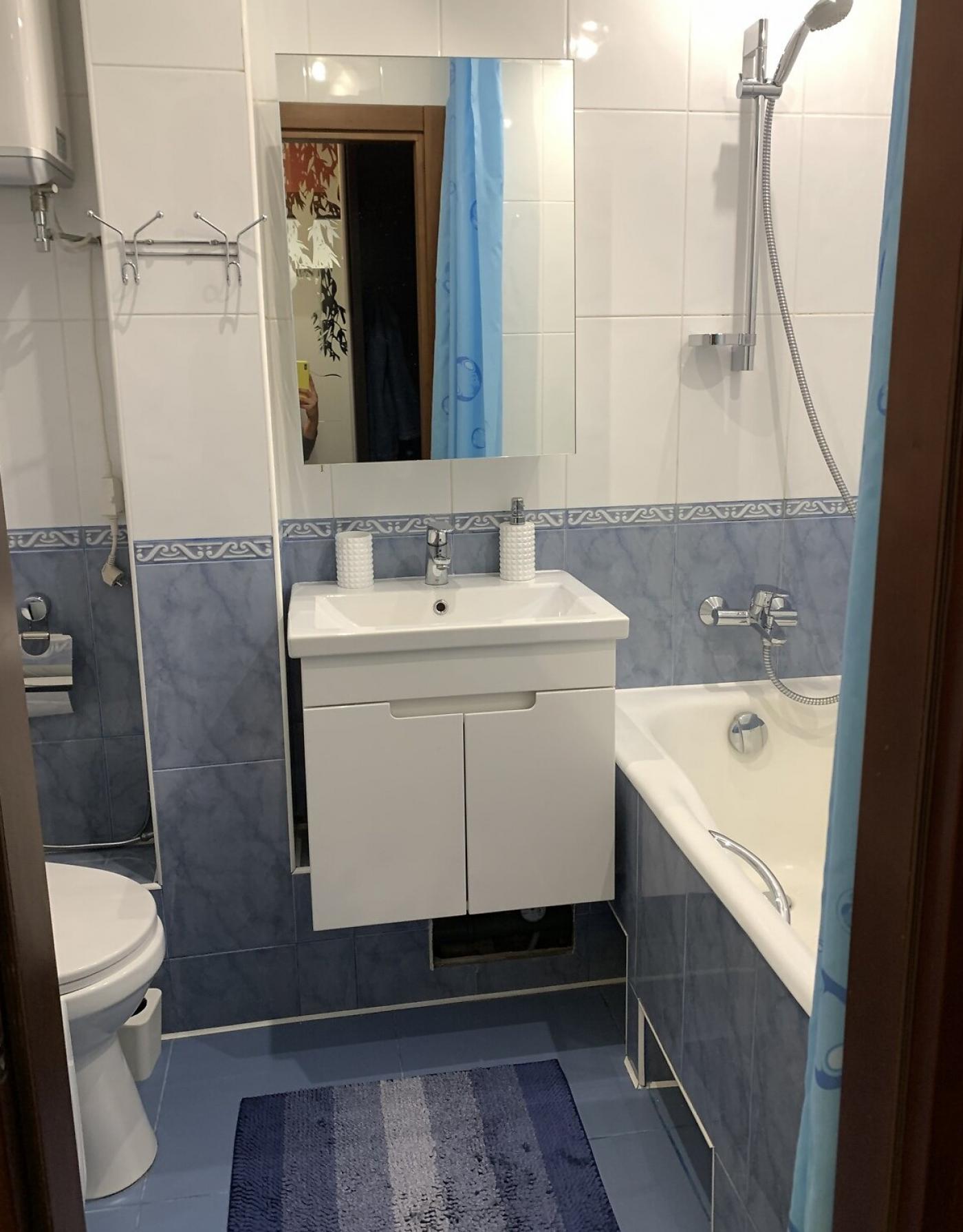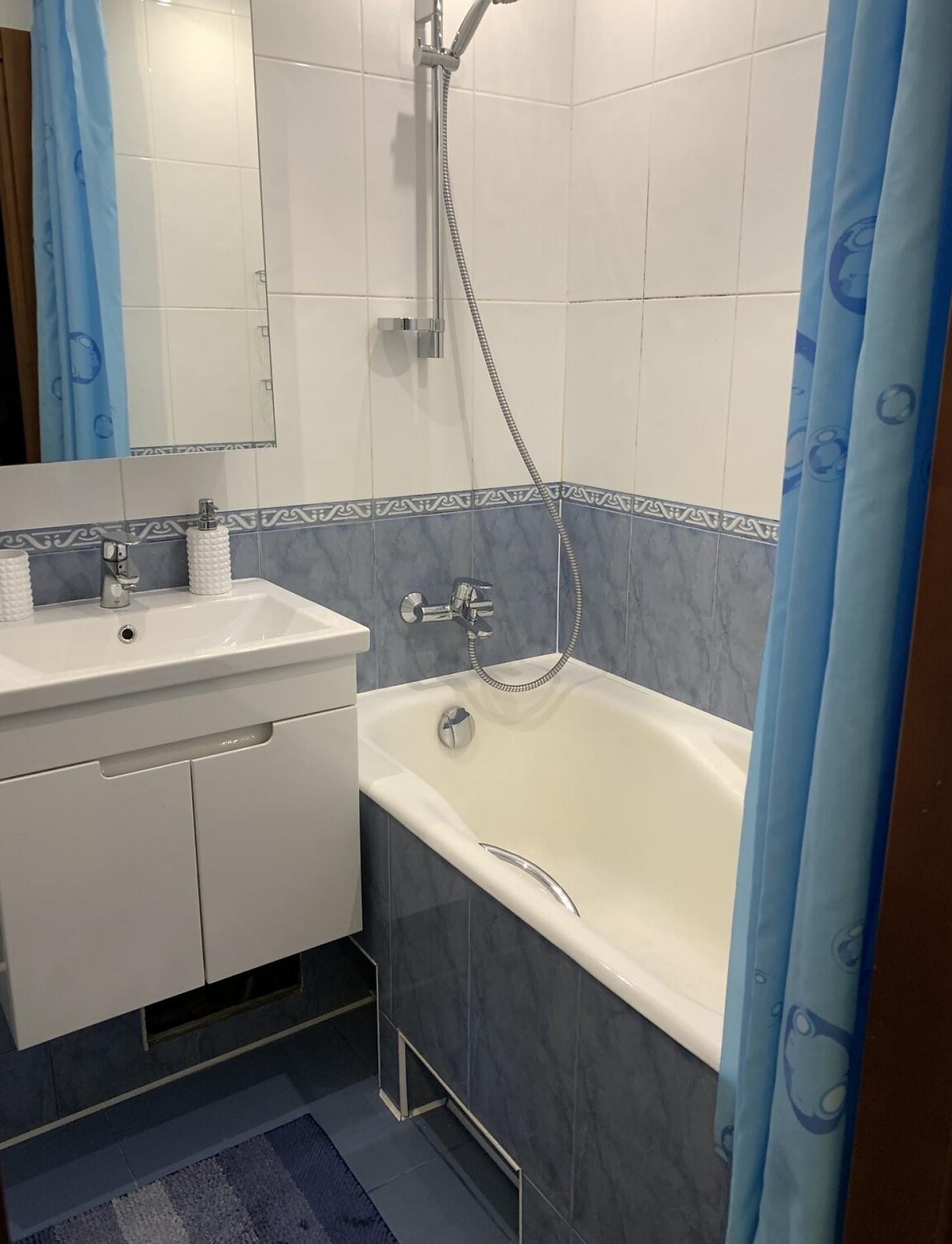 У кімнатах підлога встелена ламінатом, стіни обклеєні шпалерами. Санвузол суміжний, має ванну та повністю оздоблений плиткою.