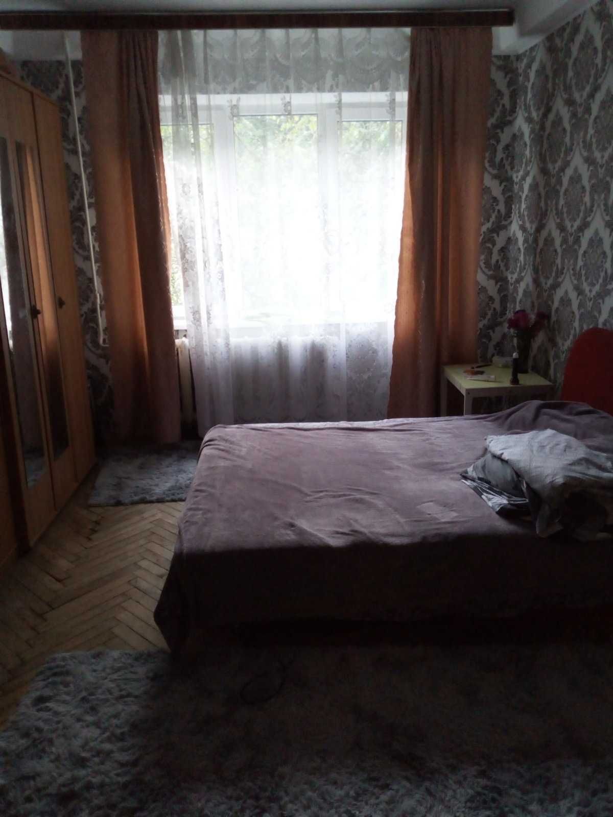 Балкон — з виходом із кімнати, під’їзд охайний. У квартирі збережено гарний стан: на підлозі — паркет і лінолеум, на стінах — шпалери.