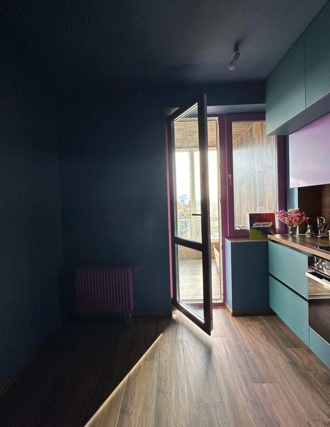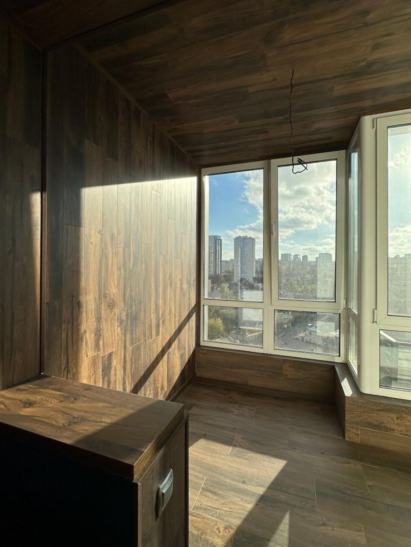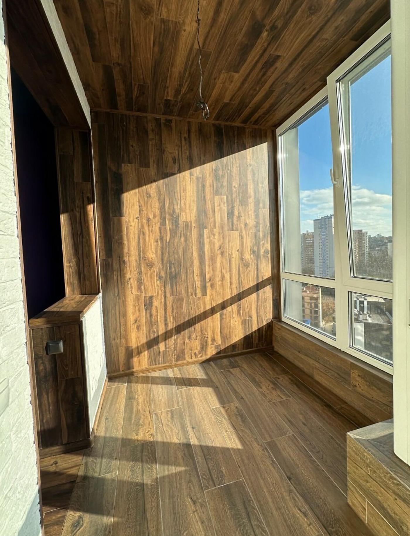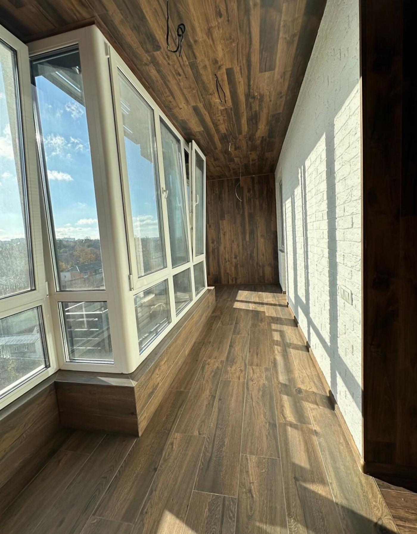 Лоджія — велика, з підігрівом підлоги, ідеально підходить для облаштування лаунж-зони, обіднього куточка або домашнього офісу. Кухонний гарнітур — місткий, з великою кількістю місця для зберігання.