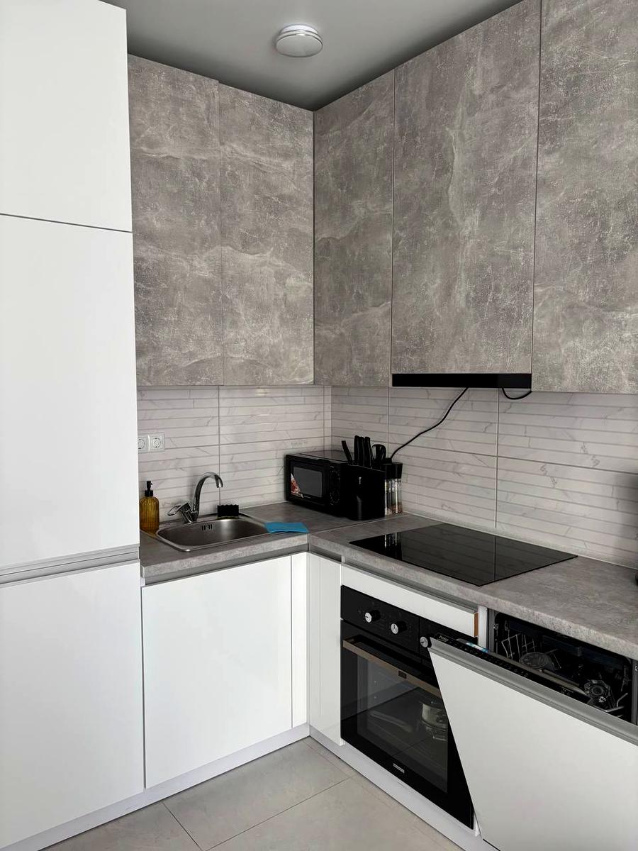У квартирі вже є все необхідне: шафа, ліжко, холодильник, пральна машина, посудомийна машина, кондиціонер, лічильники — можна заселятись одразу.