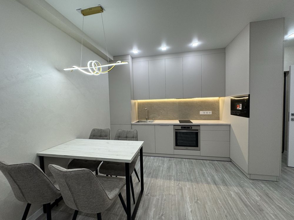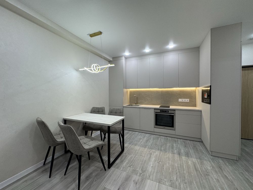 Квартира розташована на 5 поверсі 21-поверхового будинку. Загальна площа становить 42 м2, а простора кухня — 17 м2, що дозволяє облаштувати повноцінну кухню-вітальню.