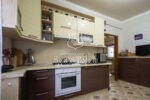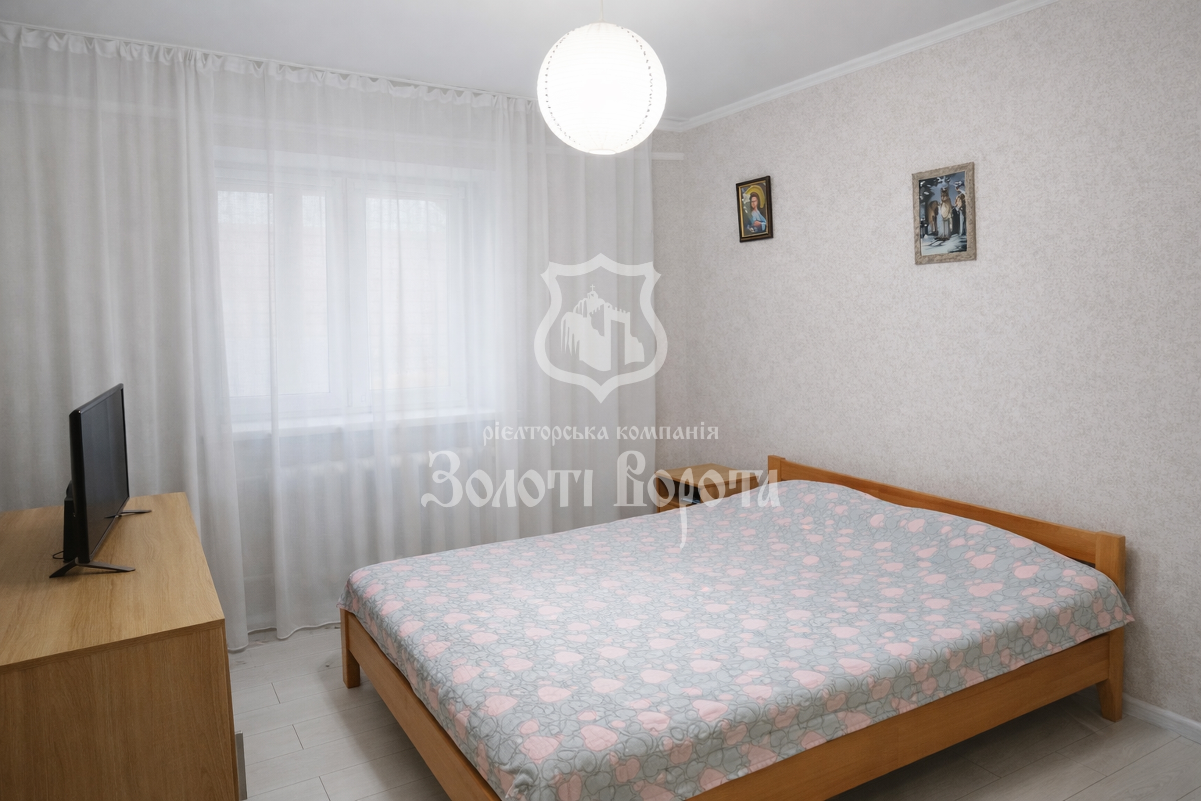 Меблі та техніка залишаються: три шафи-купе, телевізор, ліжко, диван, два м’яких крісла, електрокамін з функцією обігріву, кухня з вбудованою духовкою та варильною поверхнею — усе готове для комфортного проживання.