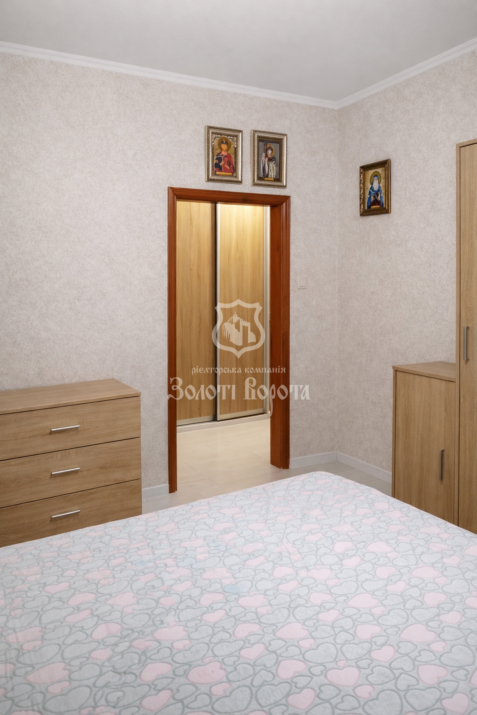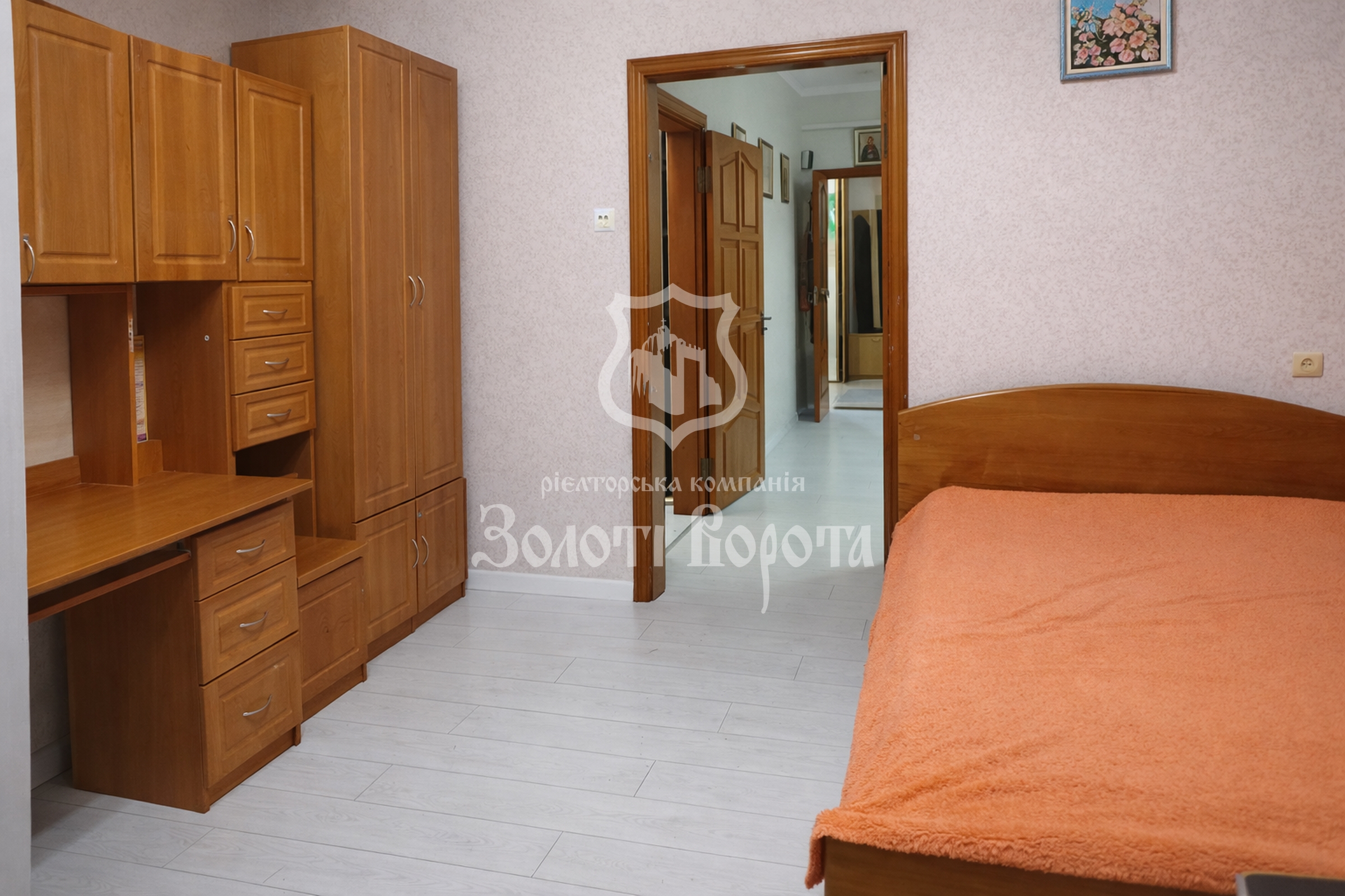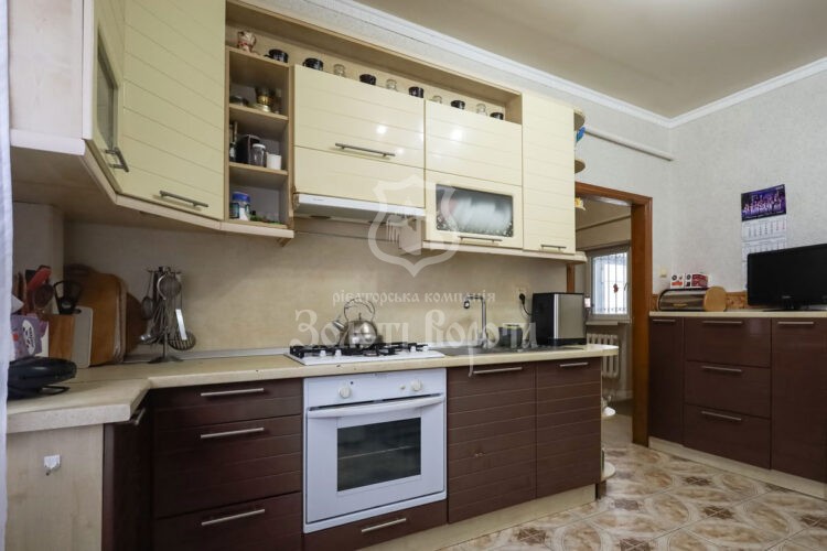 Планування включає три спальні, вітальню, кухню, ванну кімнату та добудовану веранду. Стелі — високі, 2.75 м, що додає простору й світла. Вікна — металопластикові, ремонт — євро, стан — доглянутий.