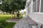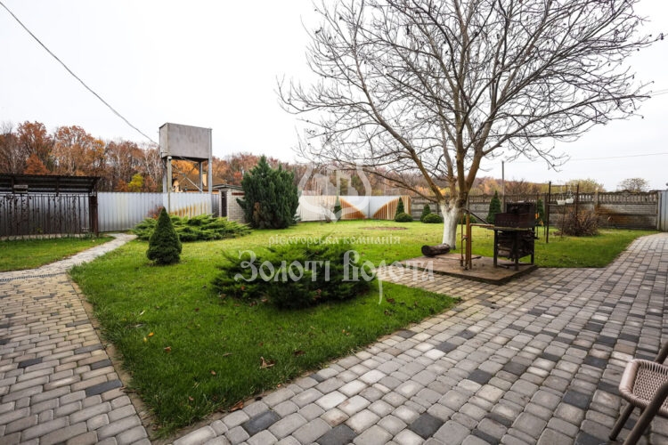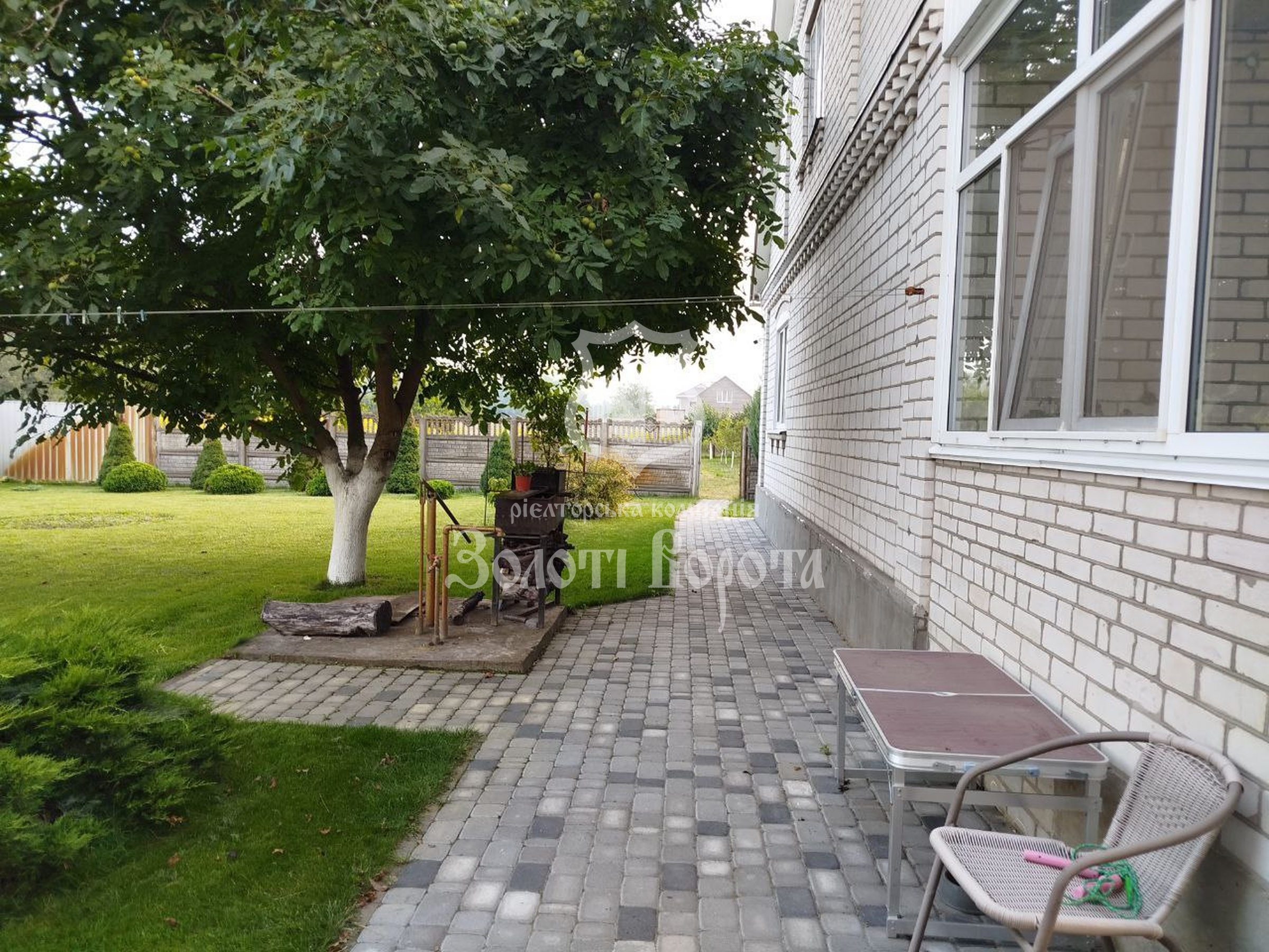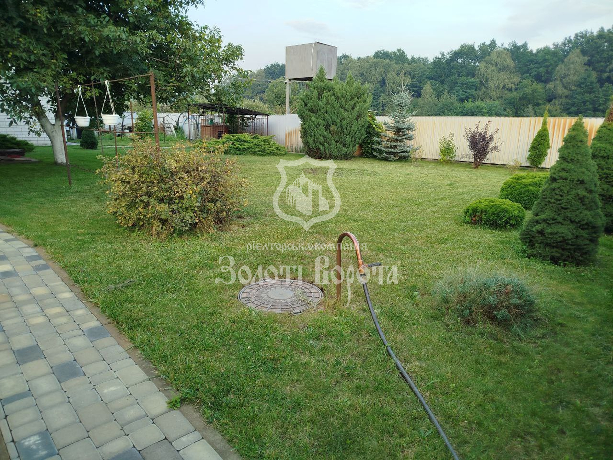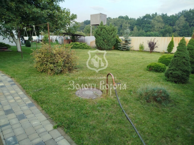 Газон доглянутий, є автоматичний полив, декоративні кущі, фруктовий сад і город.