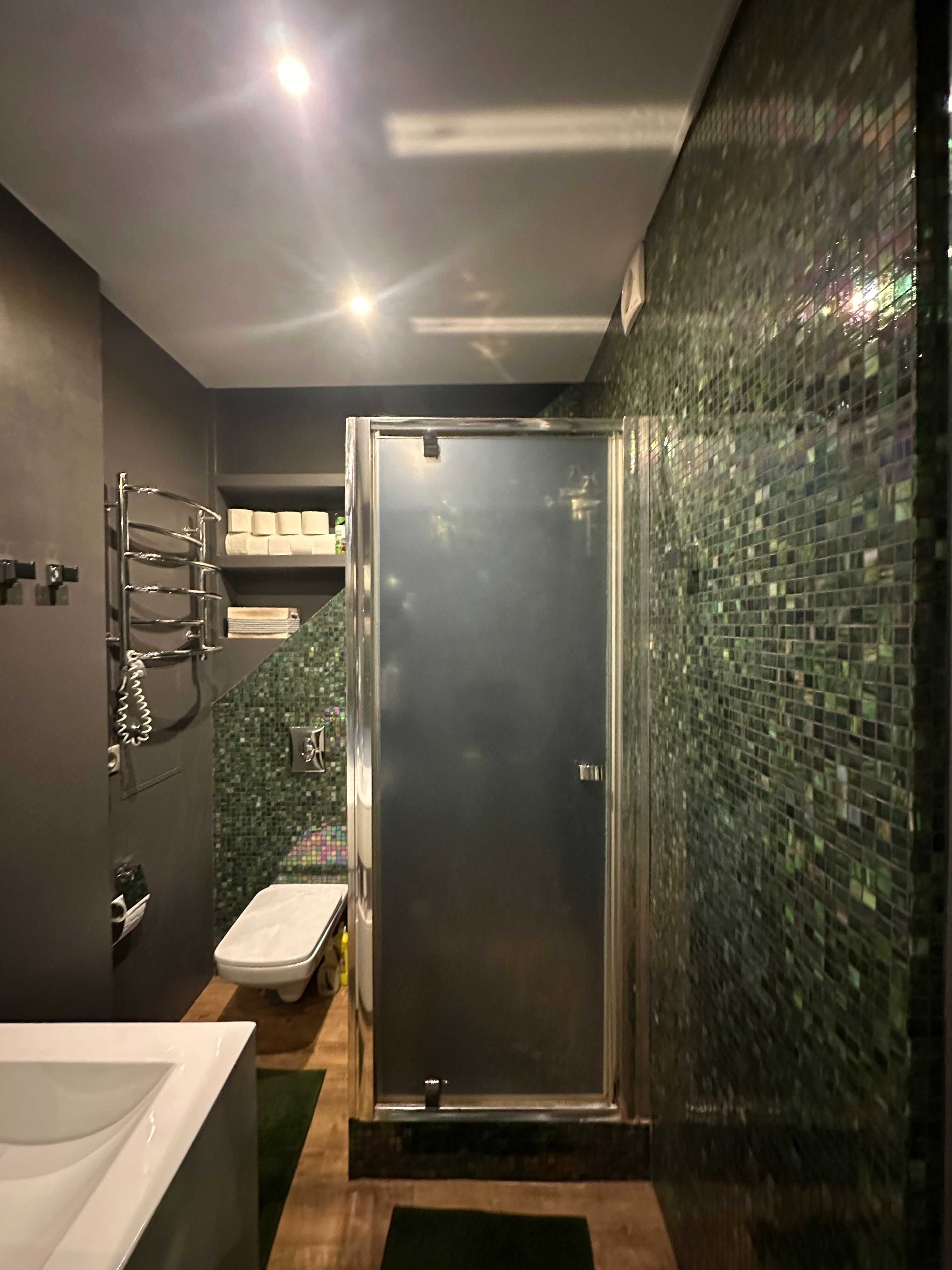 У кожній кімнаті встановлено кондиціонер, бойлер на 80 літрів забезпечує стабільне гаряче водопостачання. Великі вікна наповнюють простір світлом, а тепла атмосфера відчувається вже при вході.