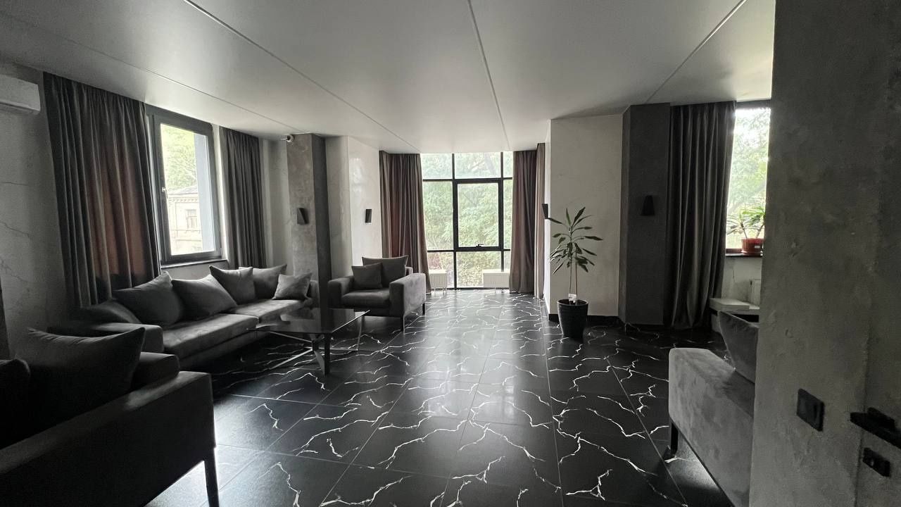 Головна перевага — панорамні вікна від підлоги до стелі, які наповнюють простір світлом та відкривають зачаровуючий краєвид на історичний центр Києва, що безперечно надихає.