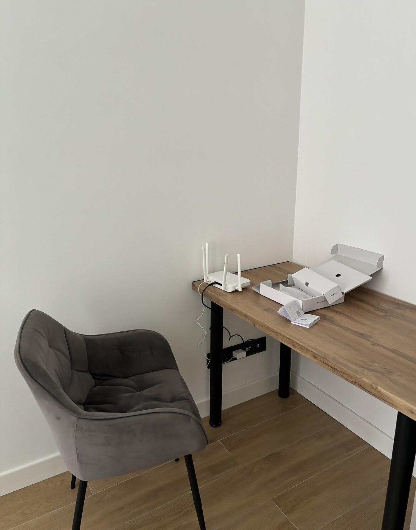 Це стильне помешкання з якісним ремонтом, виконаним із застосуванням сучасних матеріалів. Квартира перебуває у гарному стані. На підлозі постелено ламінат, стіни мають якісне оздоблення. Оселя мебльована сучасними меблями.