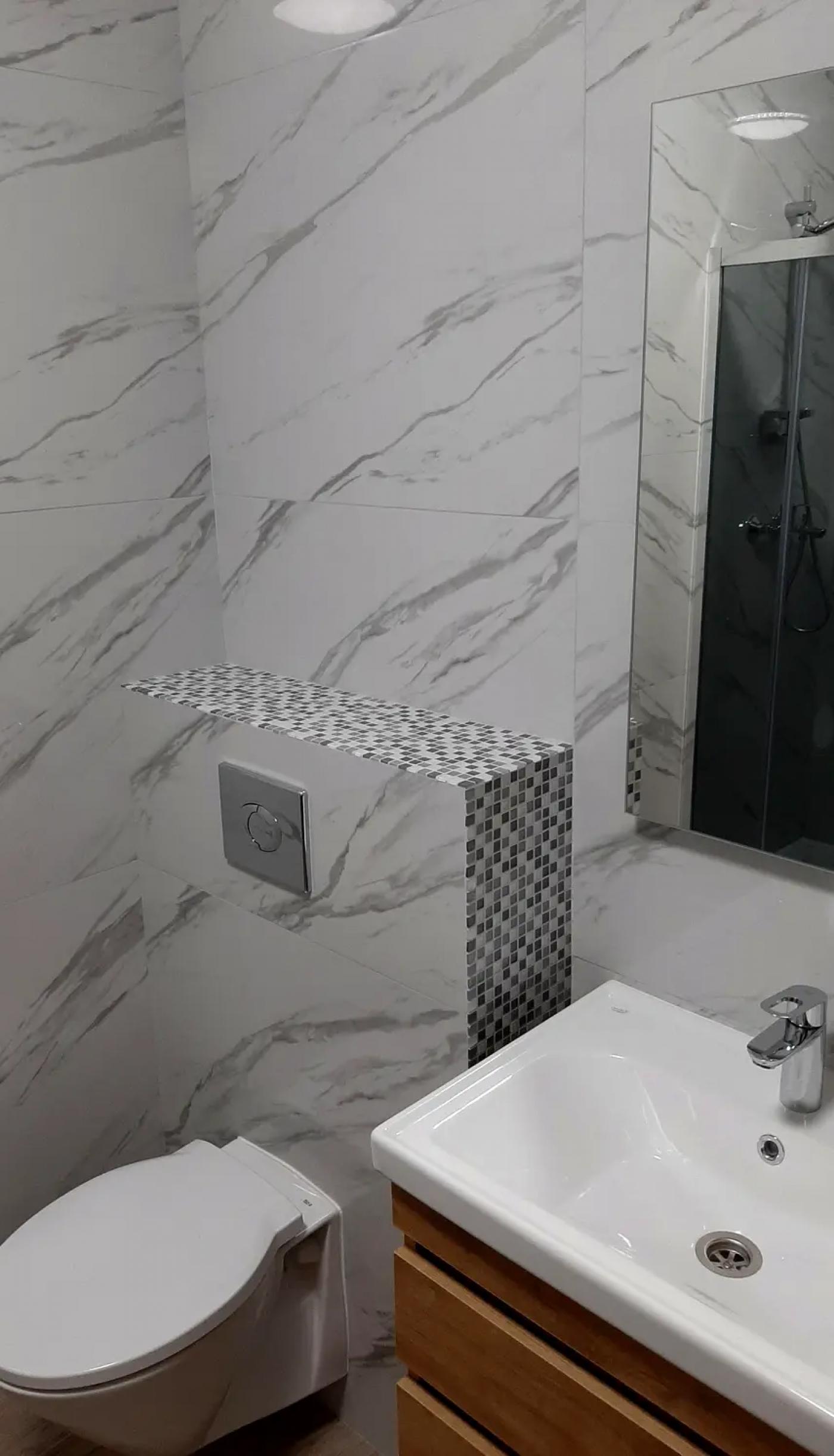Квартира повністю укомплектована всією необхідною технікою для комфортного життя: телевізор Smart TV, варильна панель, мікрохвильова піч з грилем, холодильник, бойлер, кондиціонер, а також декоративний камін.