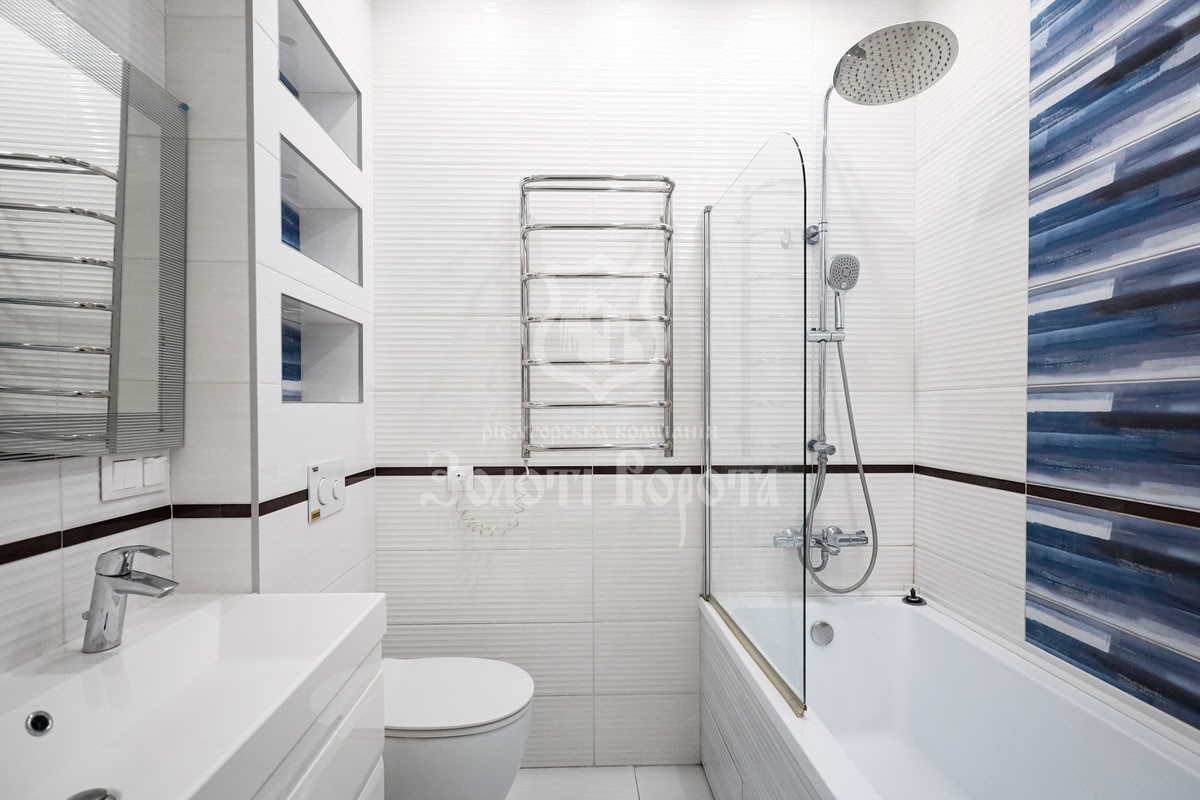 У квартирі два санвузли, що особливо зручно для родини. Встановлена охоронна сигналізація, датчики руху та захист від затоплення.