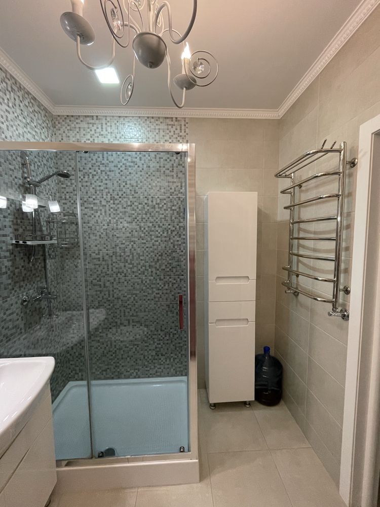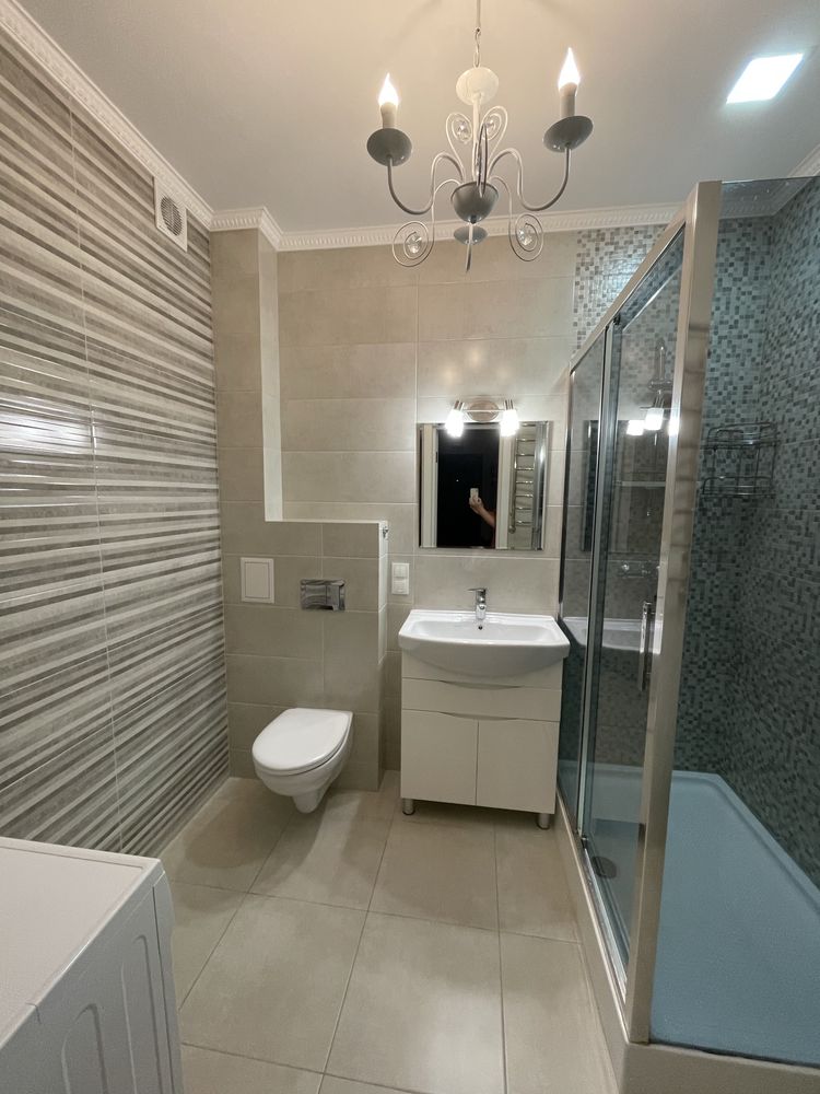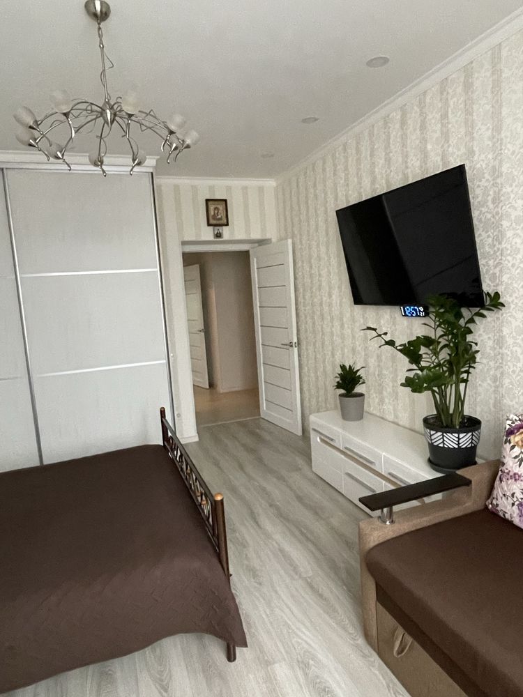 Інтер’єр оформлено зі смаком: на підлозі — ламінат і плитка, санвузол суміжний, оздоблений плиткою. Квартира повністю обладнана сучасною побутовою технікою, включно з двома кондиціонерами, що забезпечують комфорт у будь-яку пору року.
