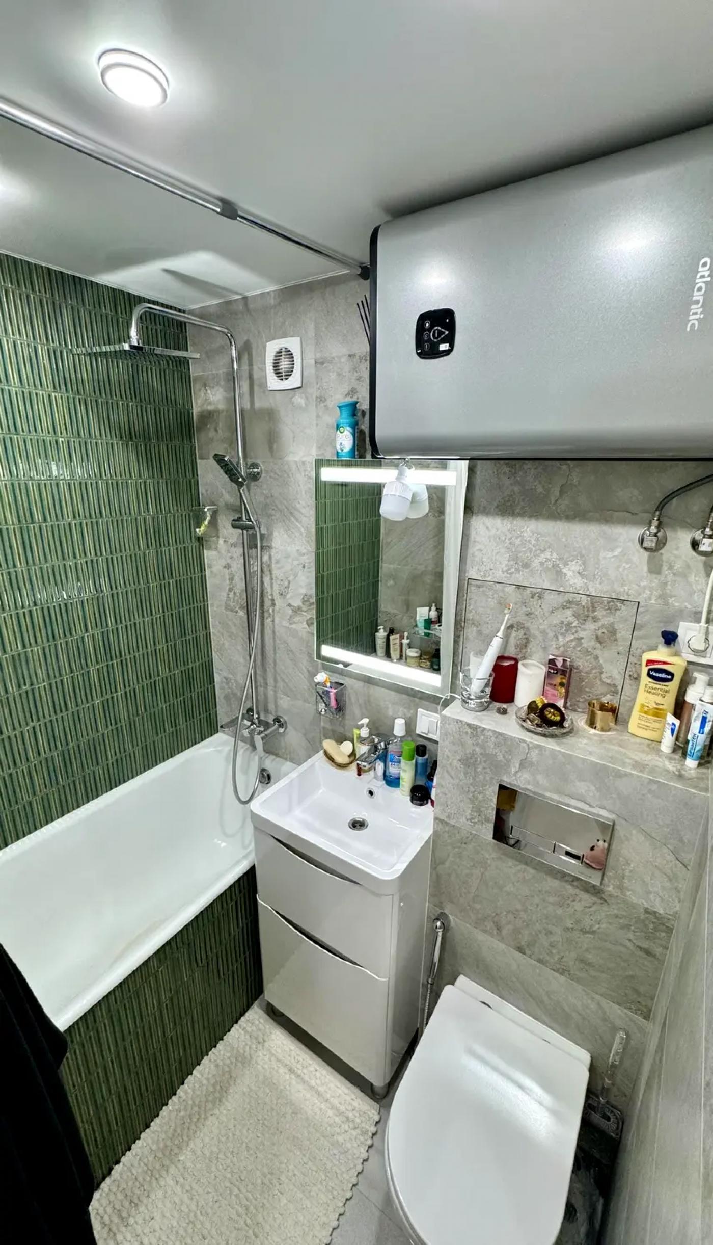 У квартирі є все необхідне для життя — кондиціонер, мікрохвильова піч, пральна машина, бойлер, холодильник, витяжка, фільтр для води та навіть подрібнювач харчових відходів Franke.