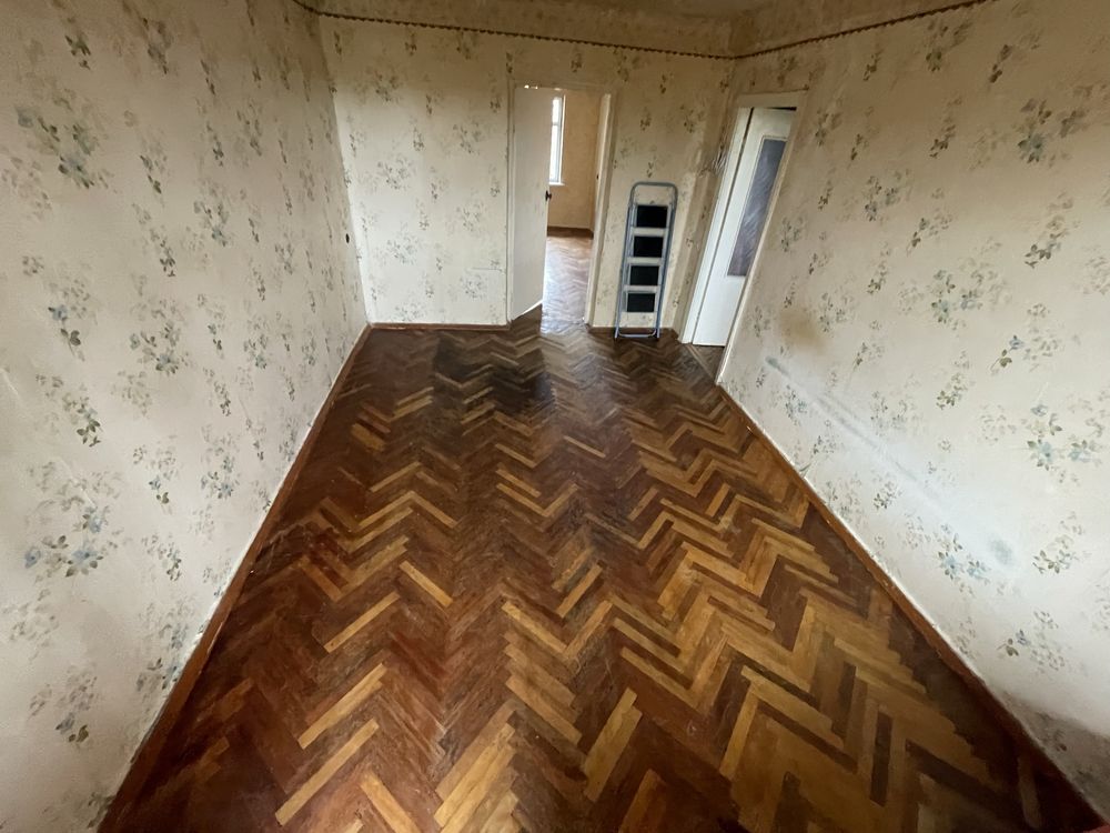 На підлозі — паркет і плитка, на стінах — шпалери. Санвузол — окремий, з ванною, оздоблений плиткою. У квартирі є газ — важлива перевага для економного та зручного побуту.