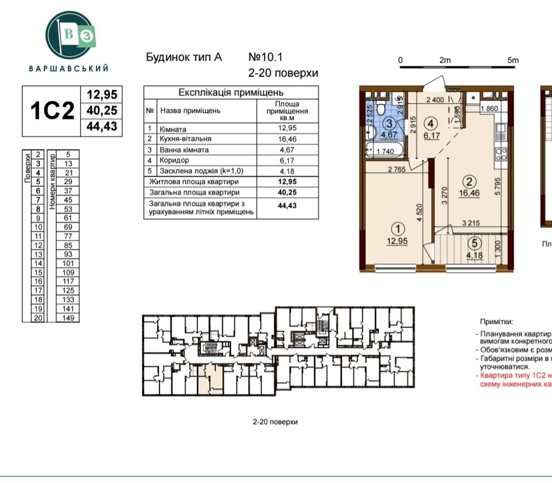Продається однокімнатна квартира площею 44,4 м² на 14-му поверсі 25-поверхового будинку у новому житловому комплексі «Варшавський 3» — продовженні популярного проєкту від STOLITSA GROUP.