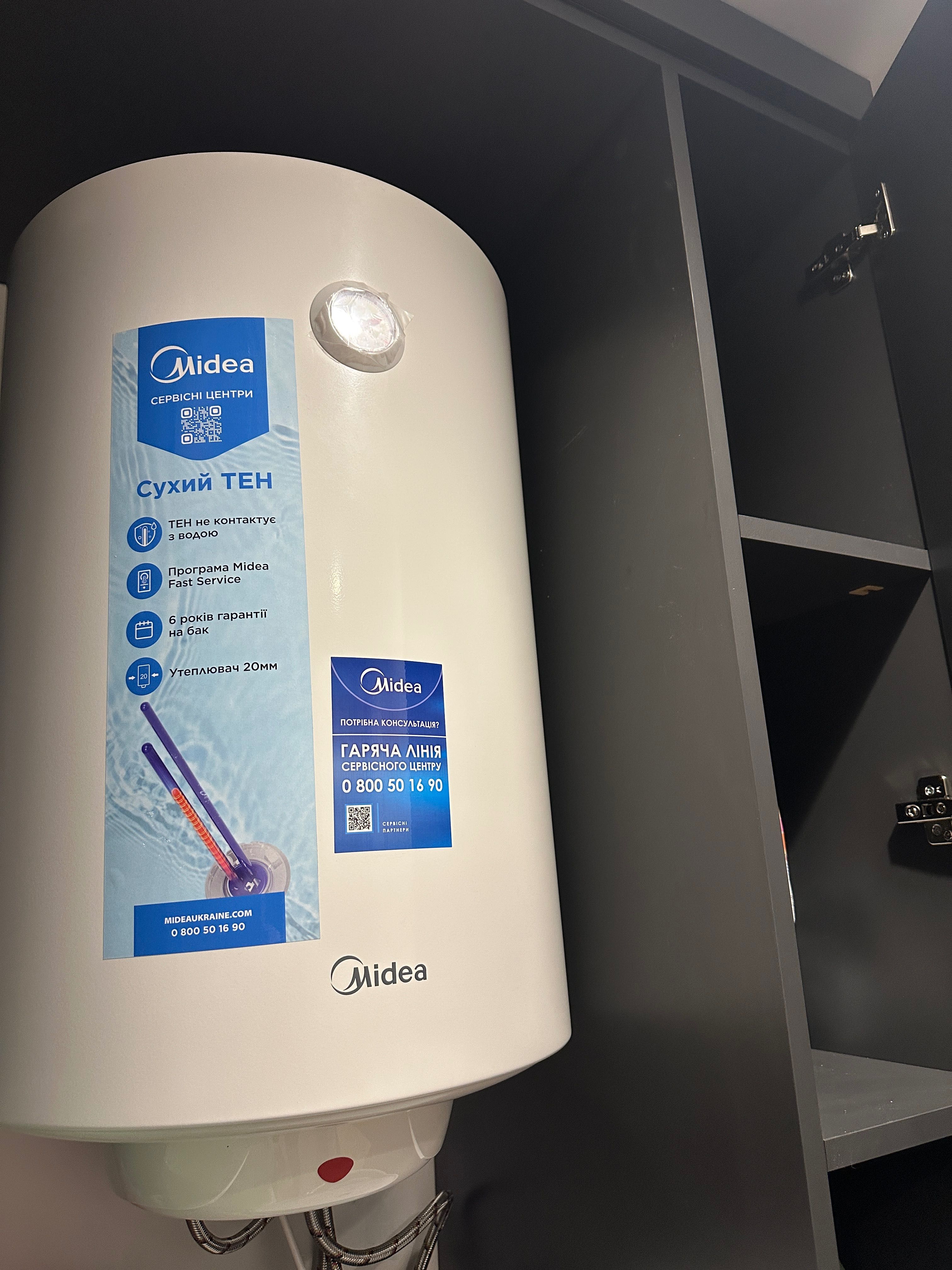 Квартира підключена до джерела безперебійного живлення, яке забезпечує роботу світла, розеток, телевізора, витяжки та холодильника протягом 6–8 годин.