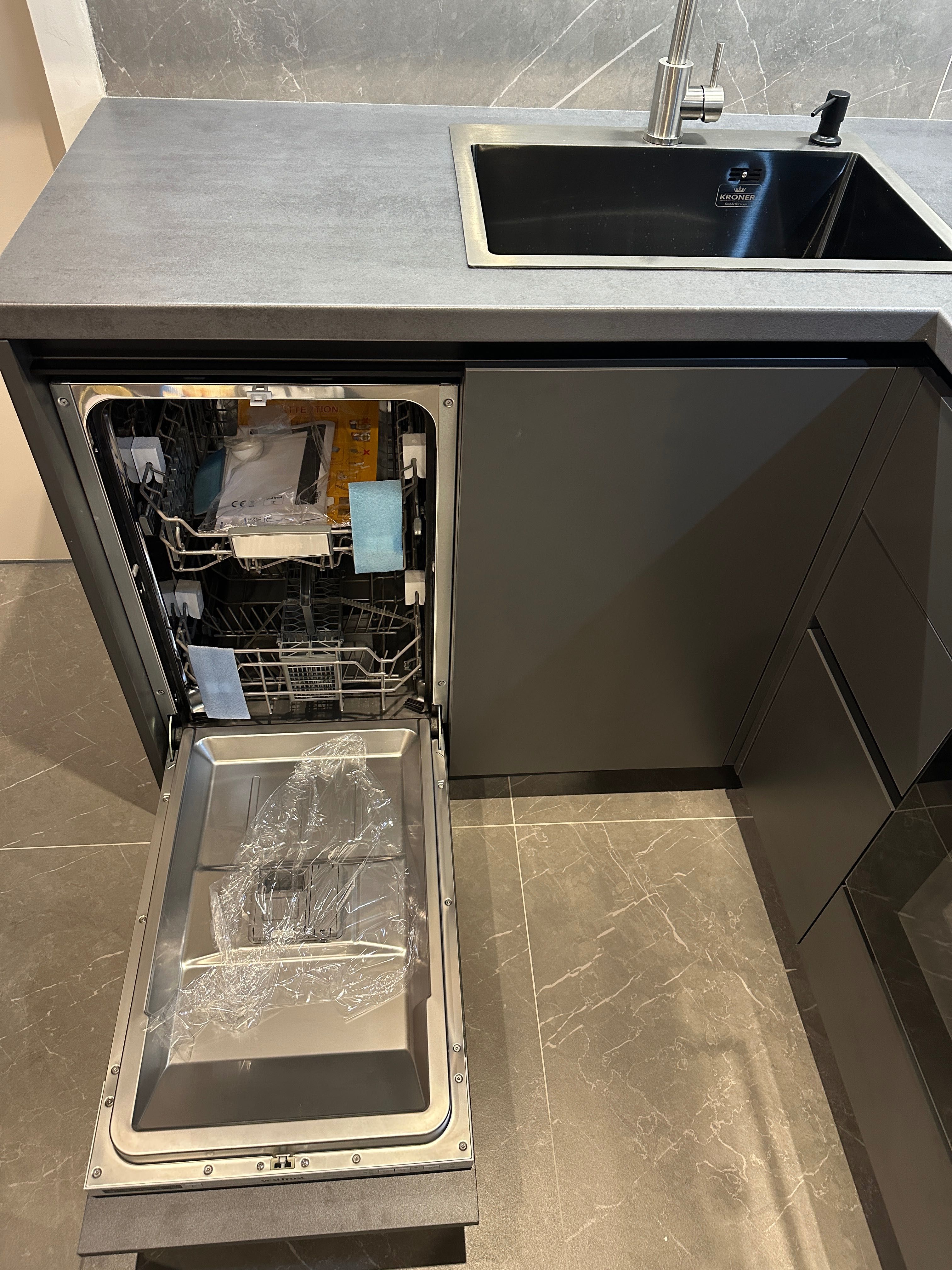 Встановлено бойлер на 80 л, вбудований холодильник, пральну та посудомийну машини, духову шафу, газову варильну поверхню, мікрохвильову піч, витяжку, телевізор, кондиціонер, Wi-Fi роутер із надійним підключенням до мережі, а також систему чорнової очистки води на всю квартиру.