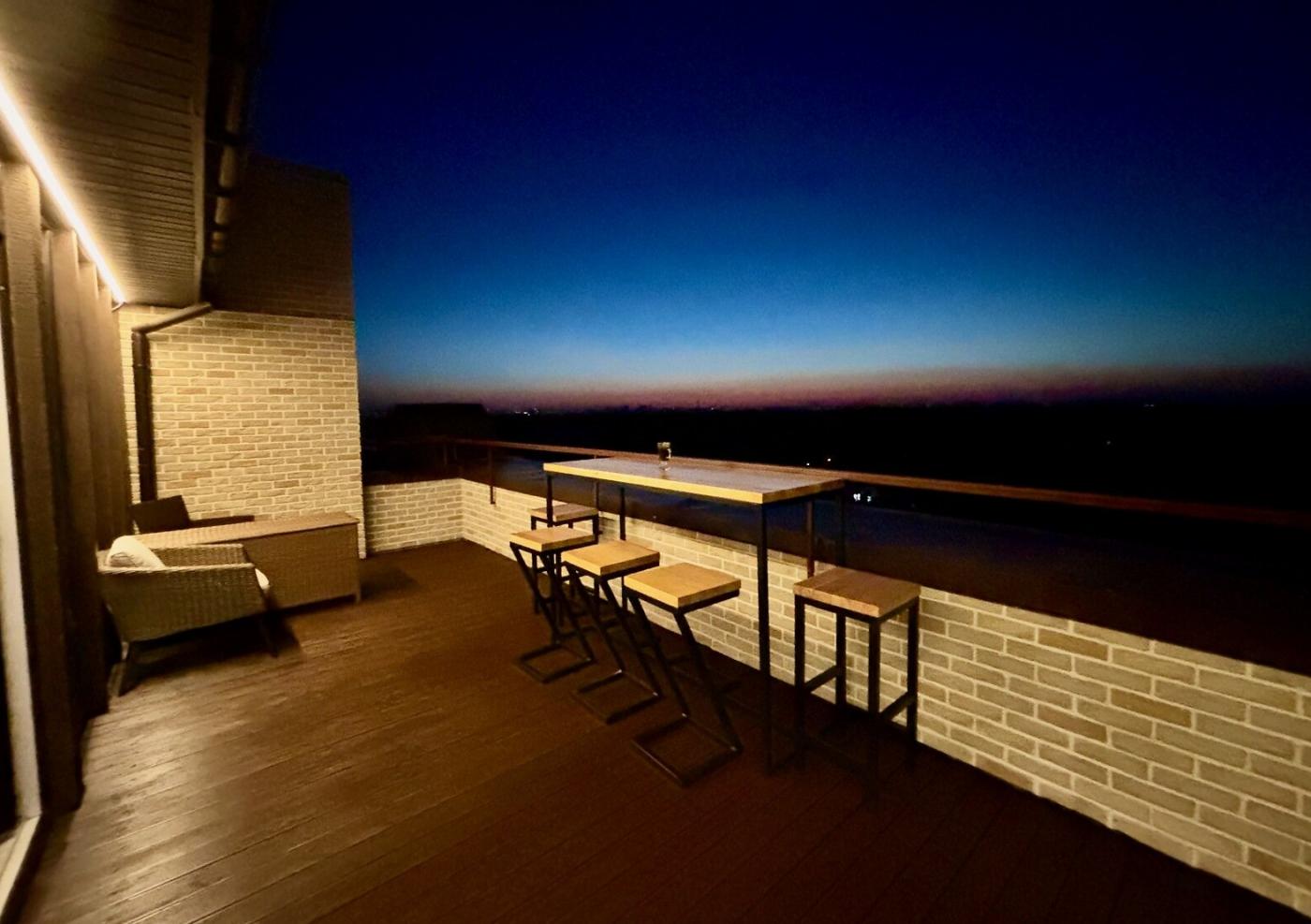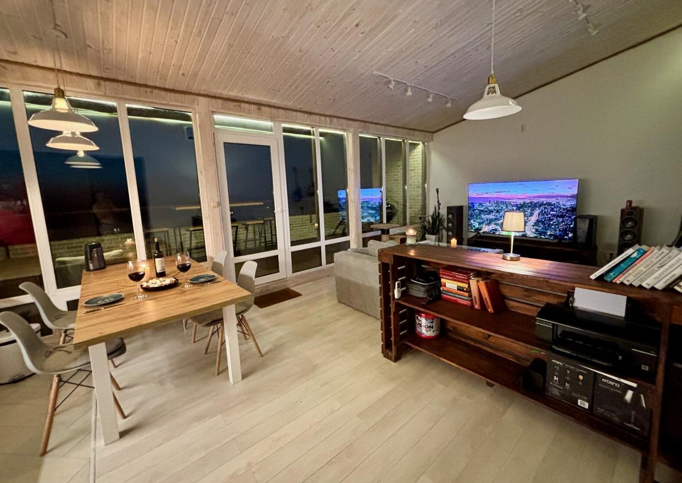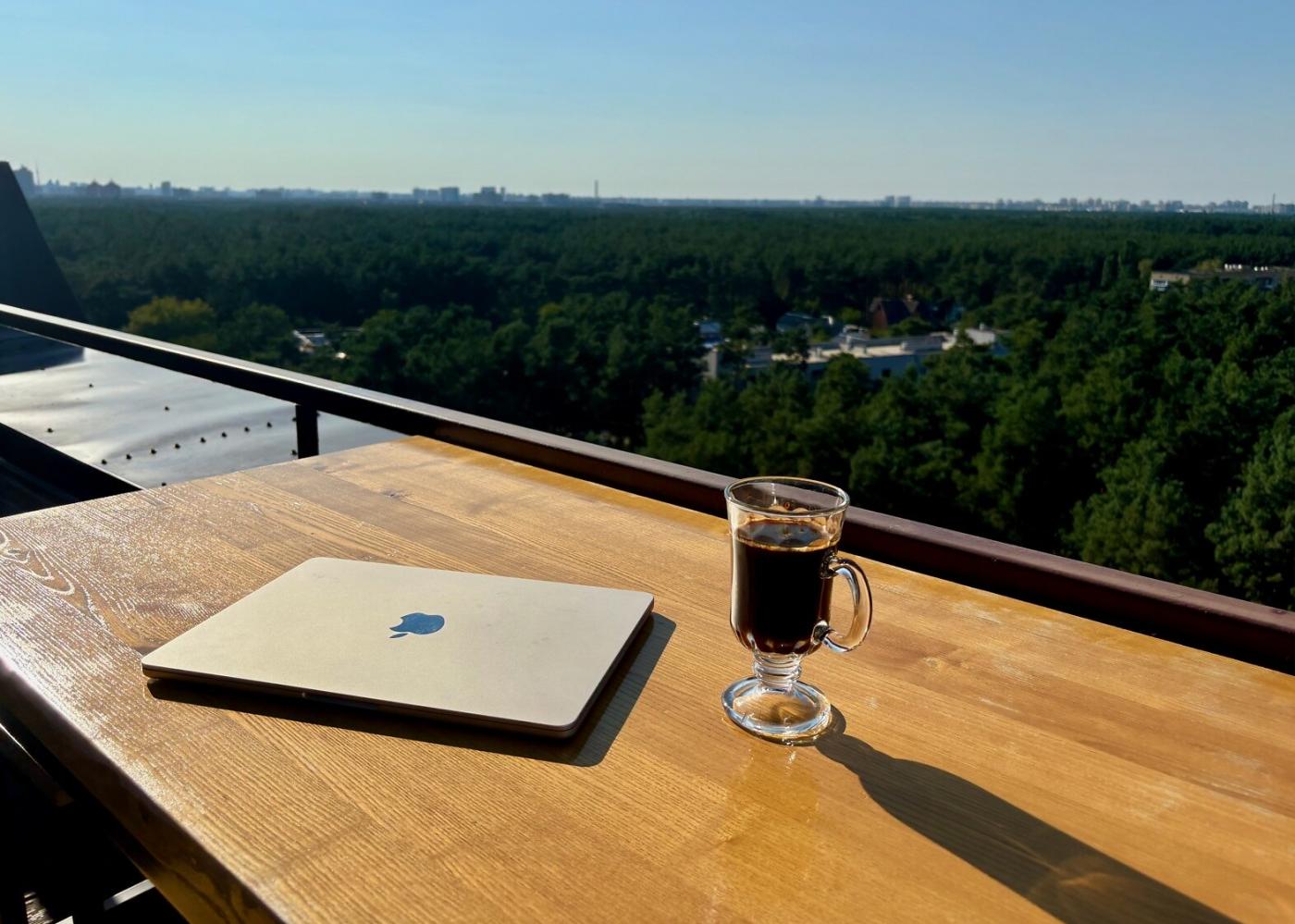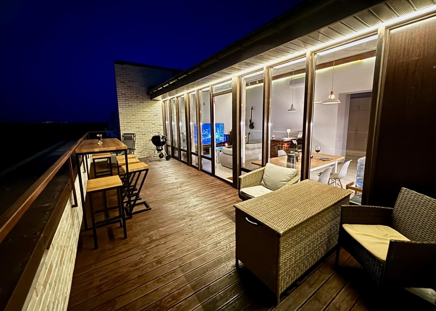 Оселя має простору терасу площею 30 м² з панорамним видом на ліс і місто — ідеальне місце для відпочинку, барбекю чи вечірніх посиденьок на відкритому повітрі.