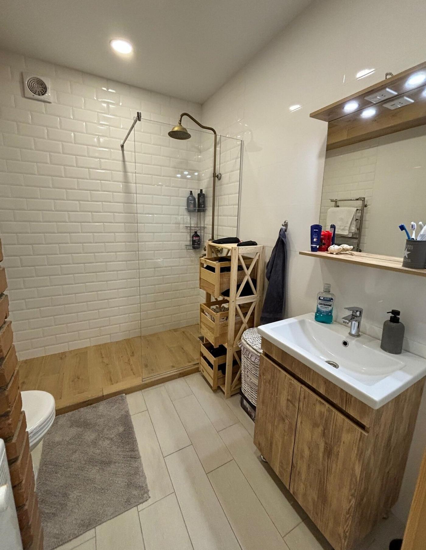 Квартира має водяну теплу підлогу по всій площі, що створює стабільний комфортний мікроклімат. Завдяки розташуванню на верхньому поверсі — жодного шуму згори. Встановлено систему «розумний будинок», яка автоматично реагує на протікання або дим, перекриваючи воду чи електрику.