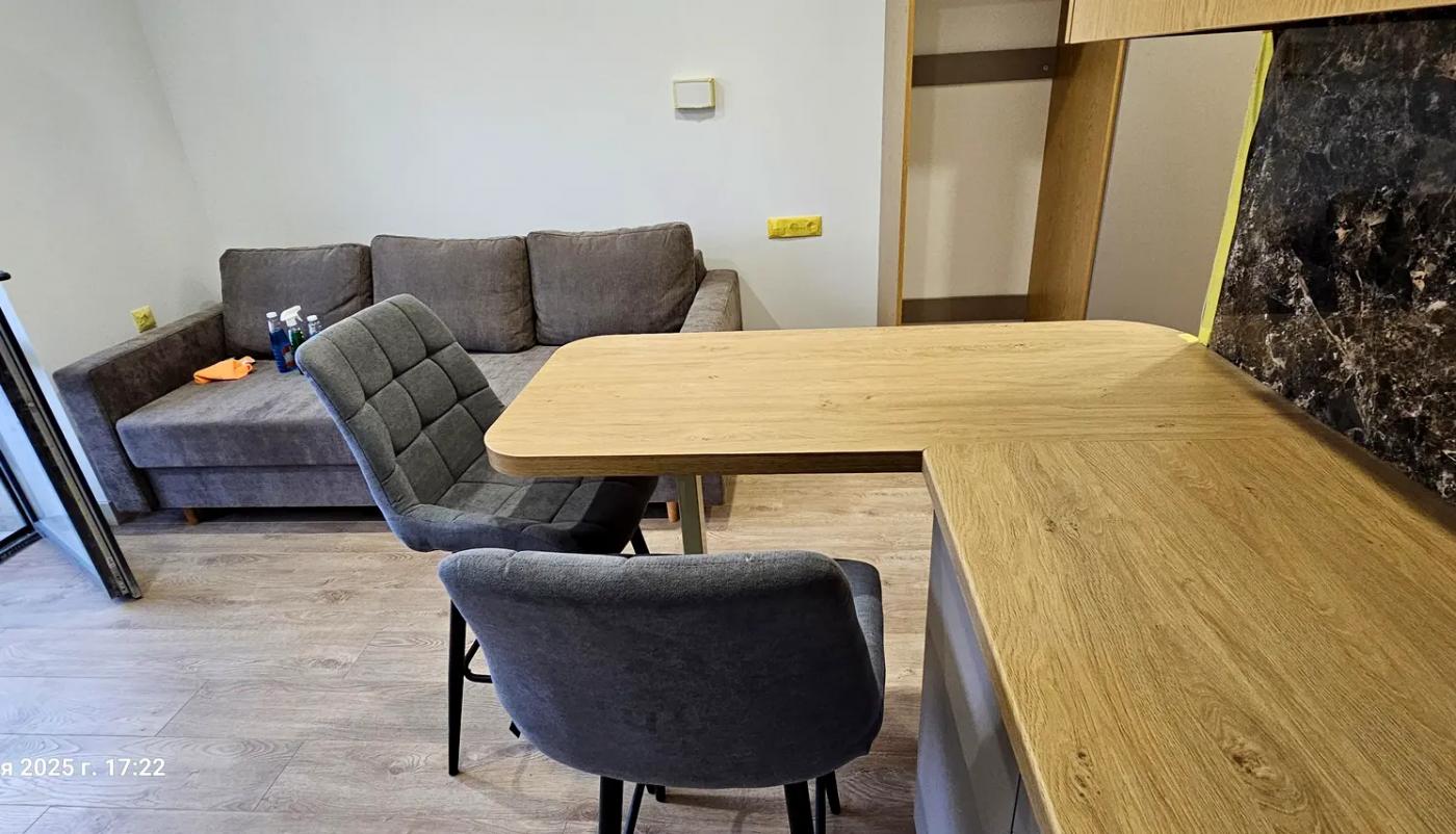Житло повністю готове до проживання: встановлений диван, який розкладається у велике двоспальне ліжко, а також якісна європейська техніка. Фурнітура виконана на високому рівні, навіть двері мають алюмінієву окрайку.