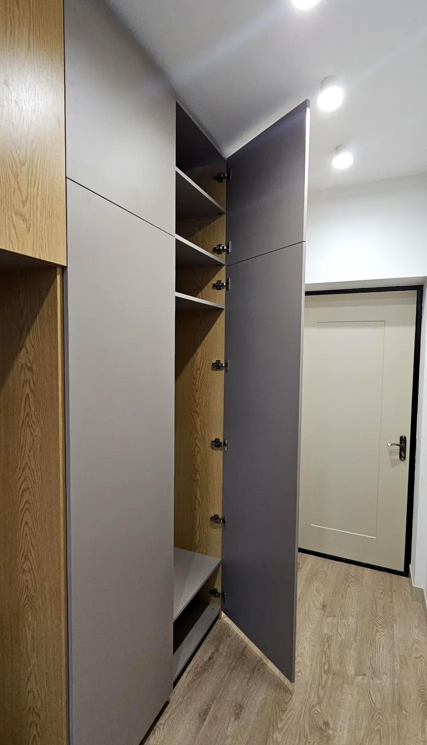 Усі меблі виготовлені на замовлення, що дозволило максимально ефективно використати простір і залишити достатньо вільного місця.