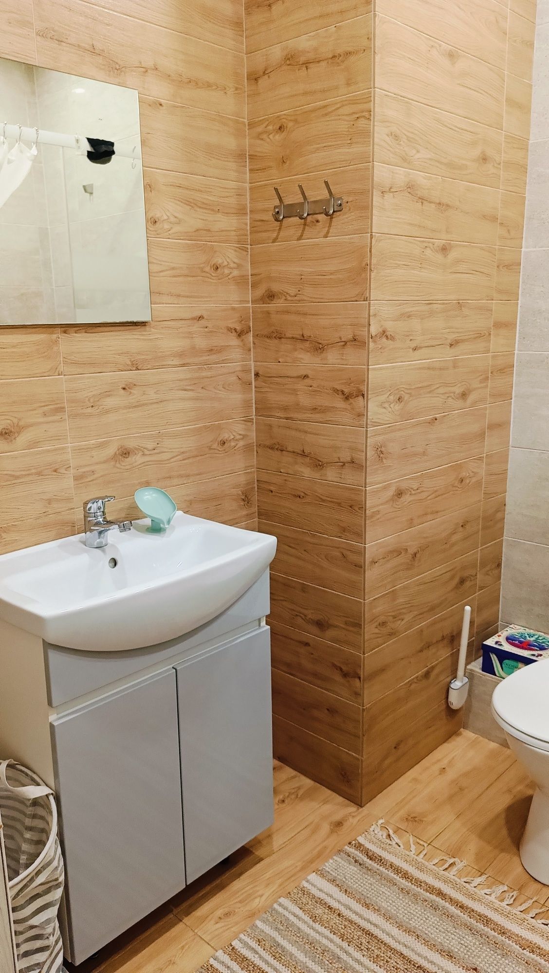 Планування продумане до дрібниць: окрема спальня, простора кухня-вітальня, містка комора, передпокій, ванна кімната та засклений балкон. Оселя створює гармонійний простір для життя, відпочинку й роботи.