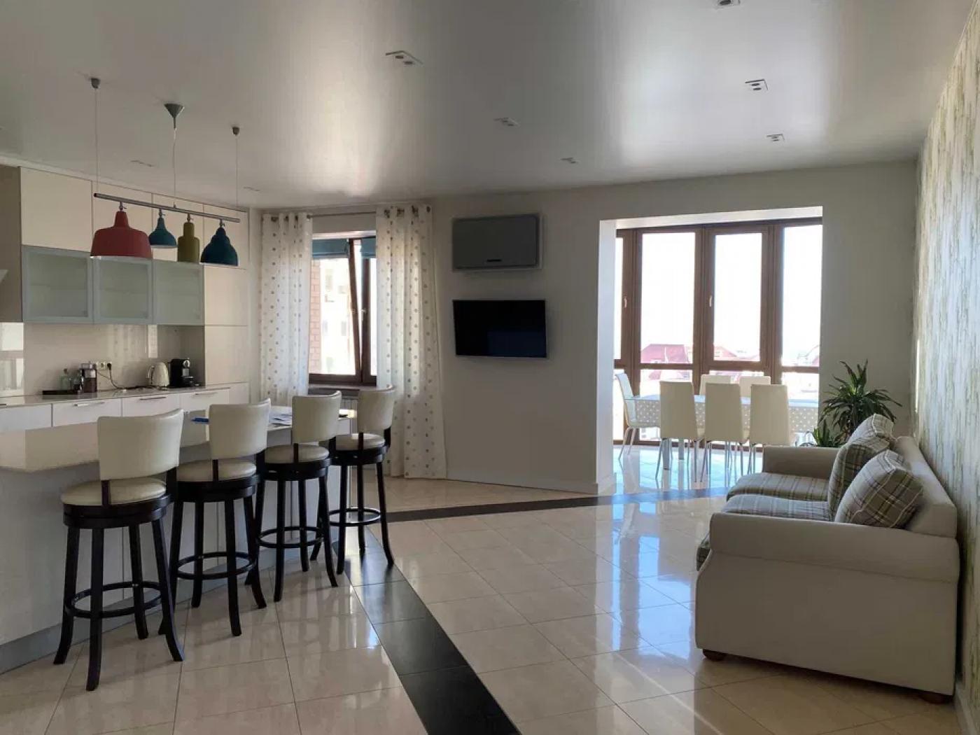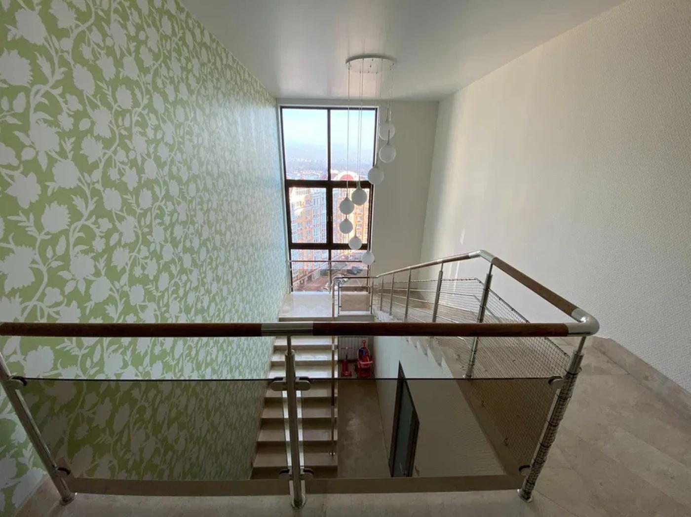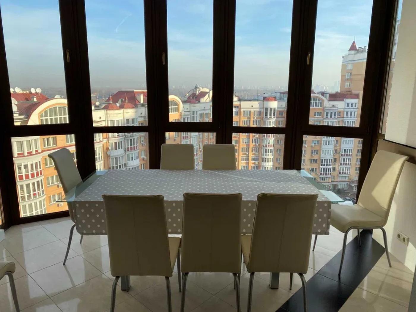 Продається 4-кімнатний пентхаус на проспекті Володимира Івасюка, 4. Загальна площа — 327 м2. Панорамний вид на дві сторони — східну та західну, у трьох рівнях.