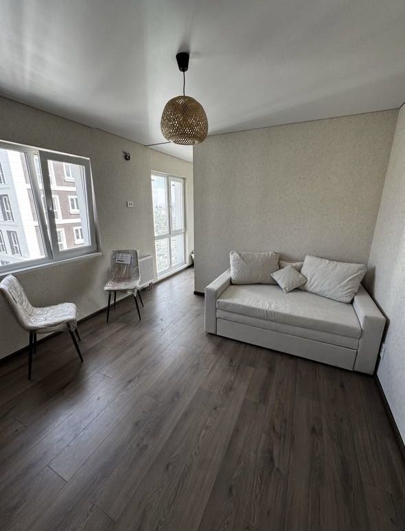 Квартира повністю готова до проживання, виконано якісний ремонт. Простір організовано як кухня-студія з електричною теплою підлогою, повністю мебльована та обладнана технікою.