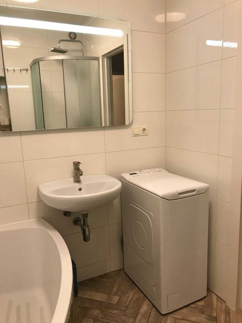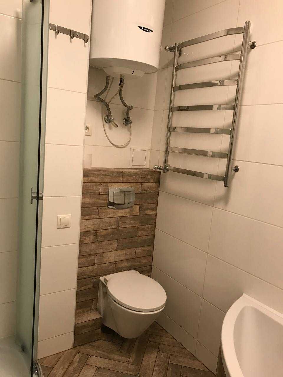 Ванна кімната — сучасна, з ванною та душовою кабіною, підвісним унітазом. Встановлено лічильники тепла, води та електроенергії, підключено провідний інтернет.