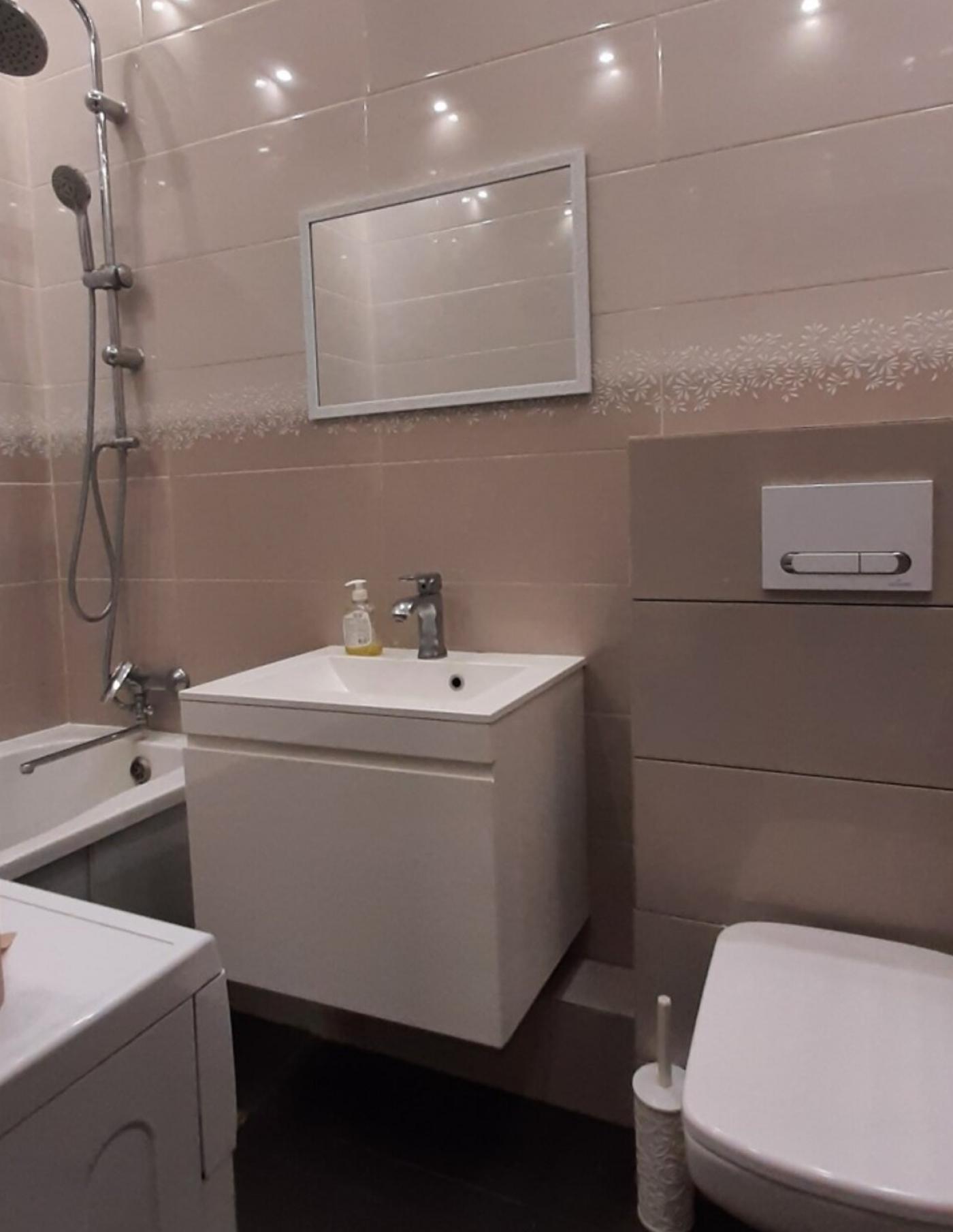 Квартира має два санвузли з гігієнічним душем і термокранами, теплу підлогу з регуляторами у кімнатах, кухні та санвузлах. Встановлено бойлер на 80 літрів, пральну машину, духову шафу, варильну поверхню (газ), витяжку, холодильник Side-by-Side із великою морозильною камерою, а також два кондиціонери «Cooper&Hunter».