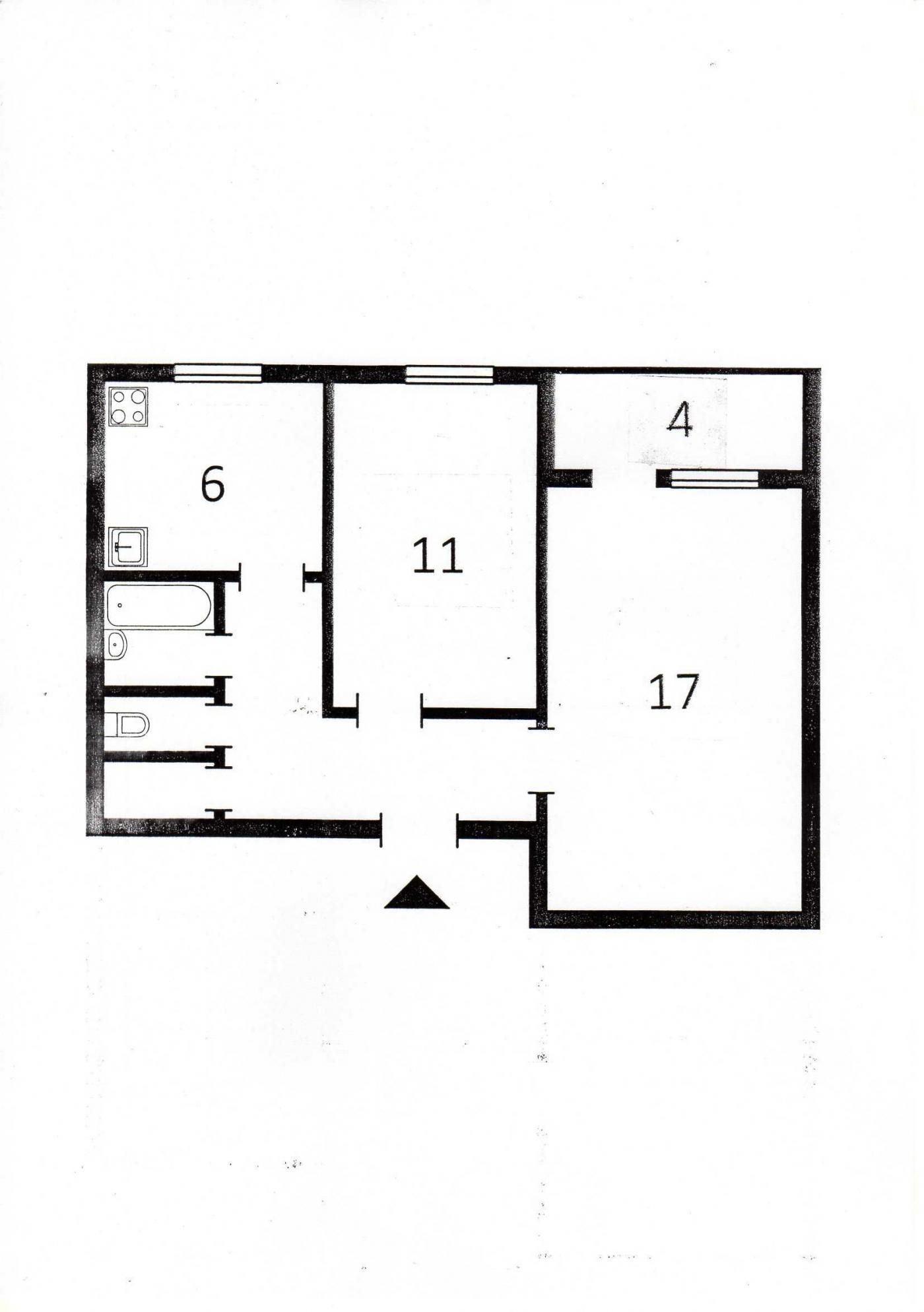 Кімнати роздільні, правильної форми: вітальня 17 м2 та спальня 11 м2. Санвузол роздільний.
