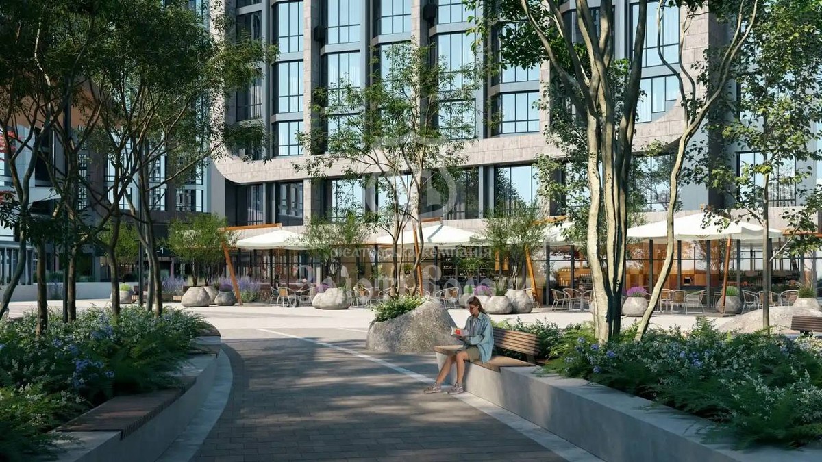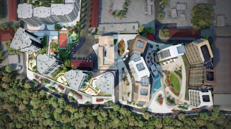 Комплекс вирізняється сучасною архітектурою та світлими фасадами. Територія закритого типу, без машин, із численними місцями для відпочинку, дитячими та спортивними майданчиками, кав’ярнями та навіть кінотеатром.