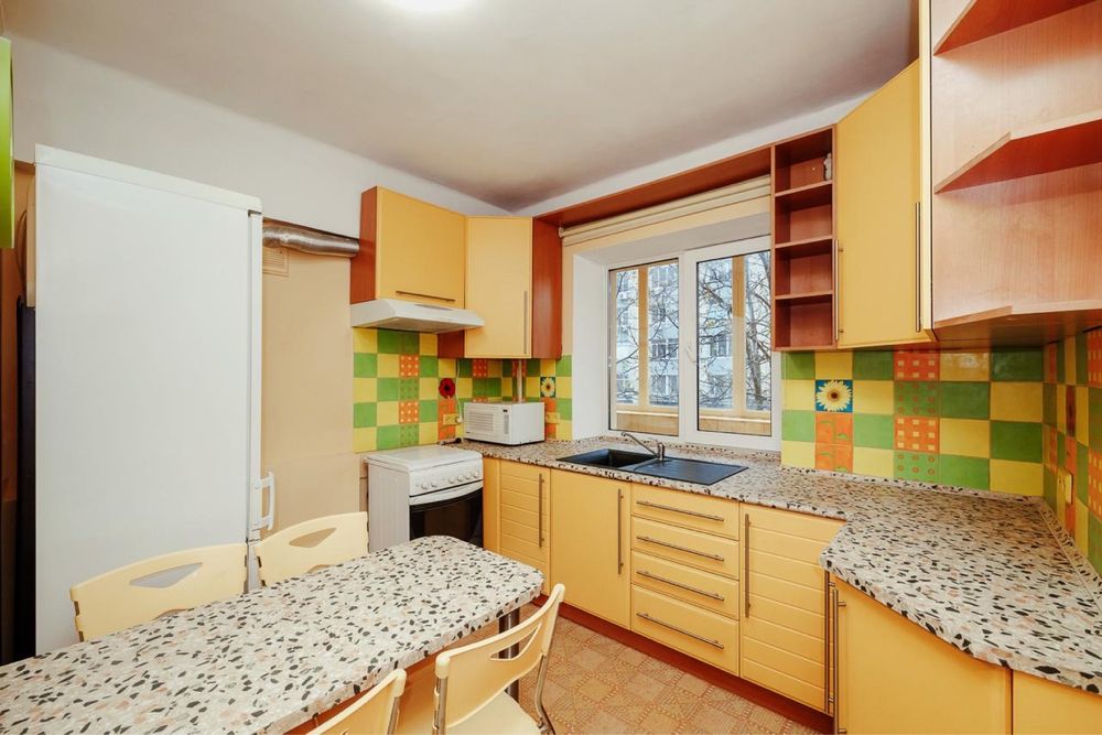 На 4 поверсі 9-поверхового будинку розташована світла двостороння квартира площею 75 м2 з окремими кімнатами, великою лоджією та балконом. Житлова площа — 50 м2, кухня — 7 м2.