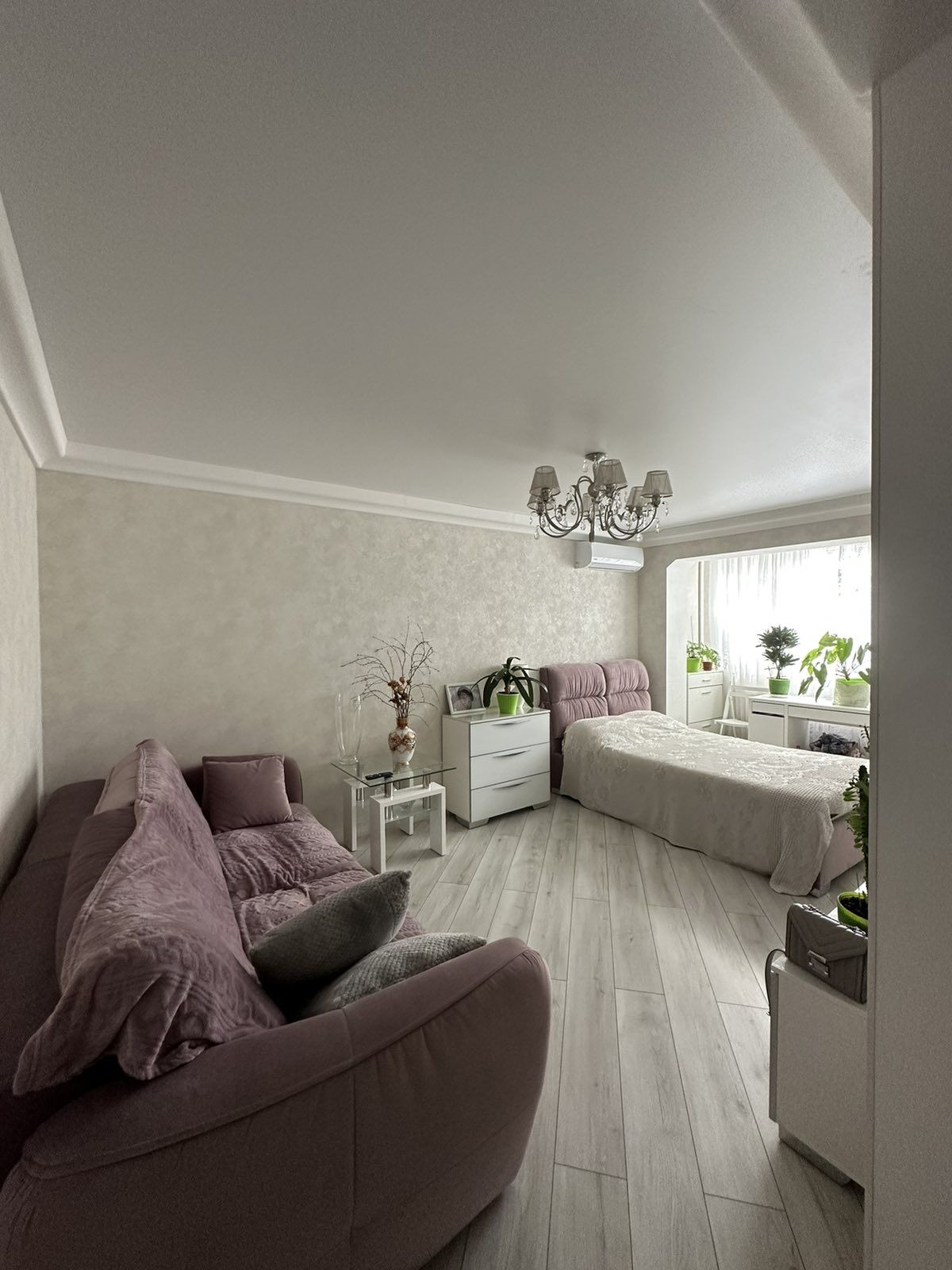 Квартира світла й затишна, з якісним ремонтом: виконана лазерна штукатурка, замінені всі комунікації, встановлені натяжні стелі, дорогі двері та меблі. У залі є еркер, а також дві лоджії, що додають простору та зручності.