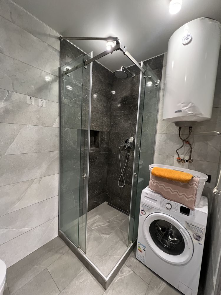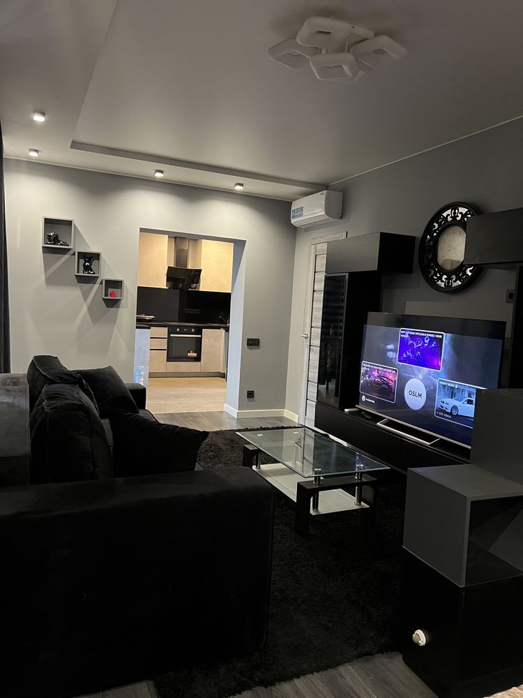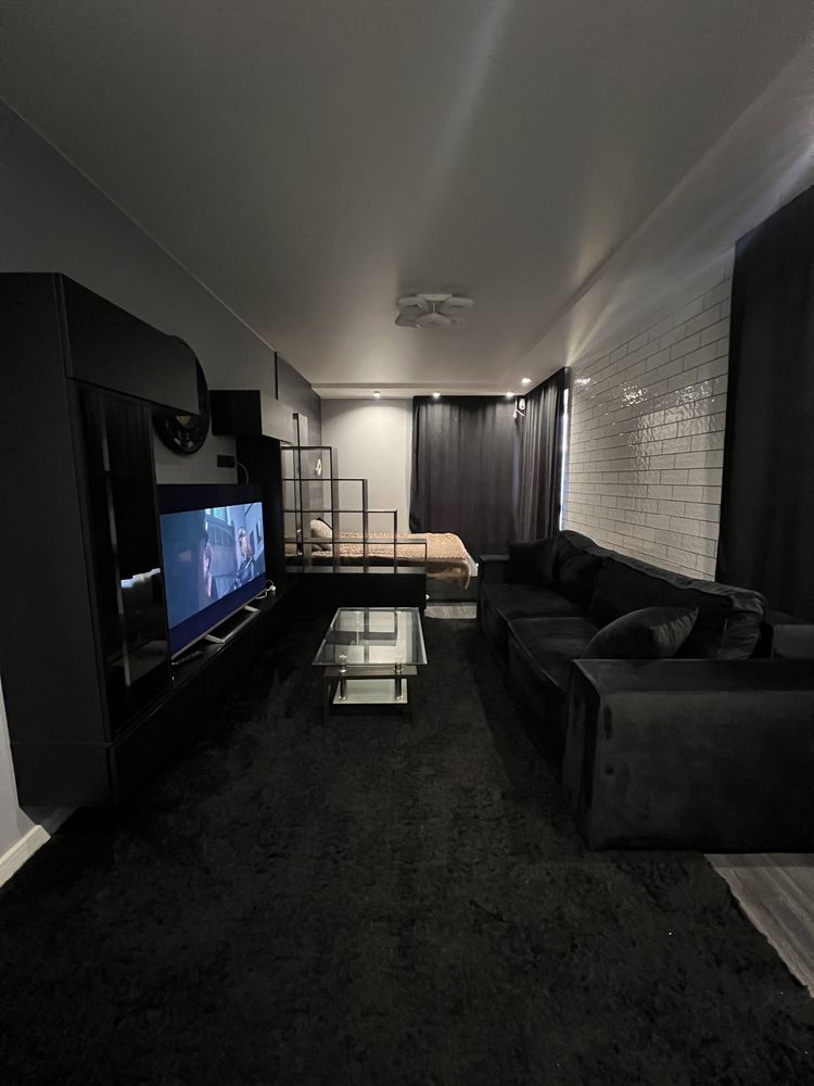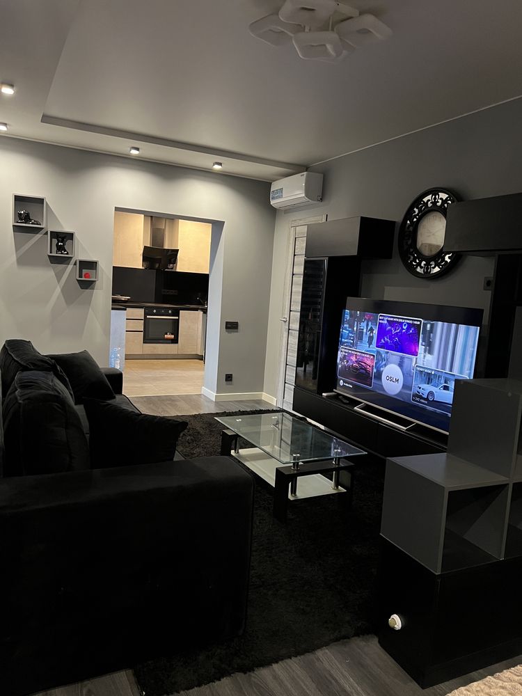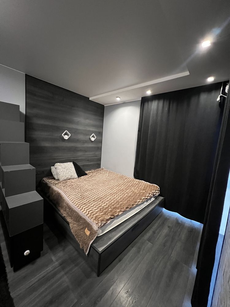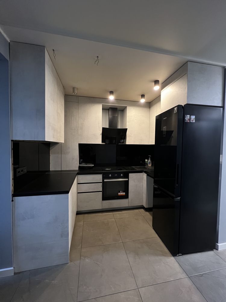 Простір продуманий до дрібниць: світла кімната комфортно зонована, кухня з виходом на балкон створює зручний сценарій щоденного життя. Ремонт виконаний з дорогих матеріалів у стильній темній гамі, що додає інтер’єру глибини та характеру.
