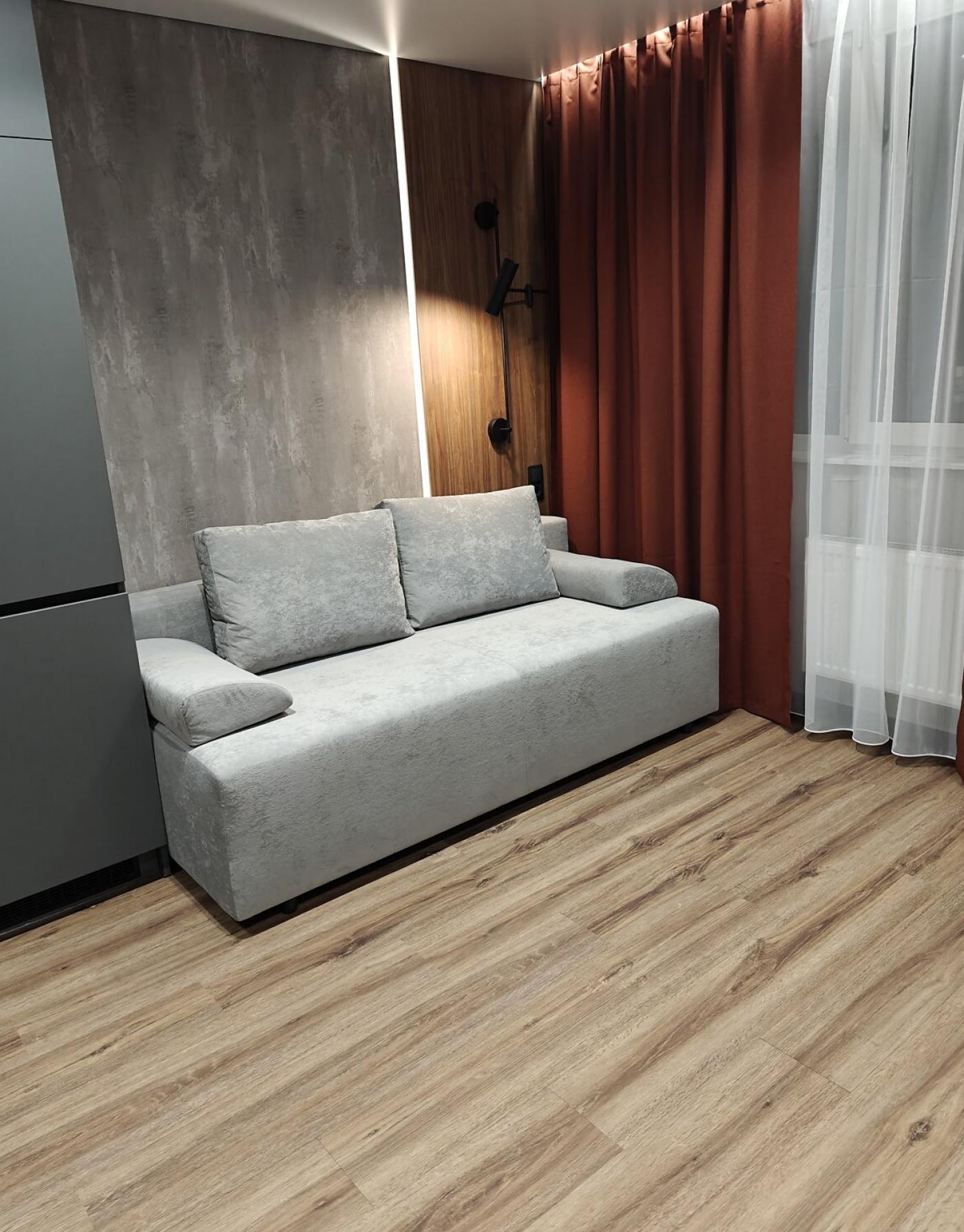 Серцем оселі є простора кухня-вітальня площею 18 м², яка ідеально підходить для прийому гостей або сімейних вечорів. Квартира повністю укомплектована для негайного заселення: тут є якісна побутова техніка, зручне двоспальне ліжко для повноцінного відпочинку та комфортний диван.