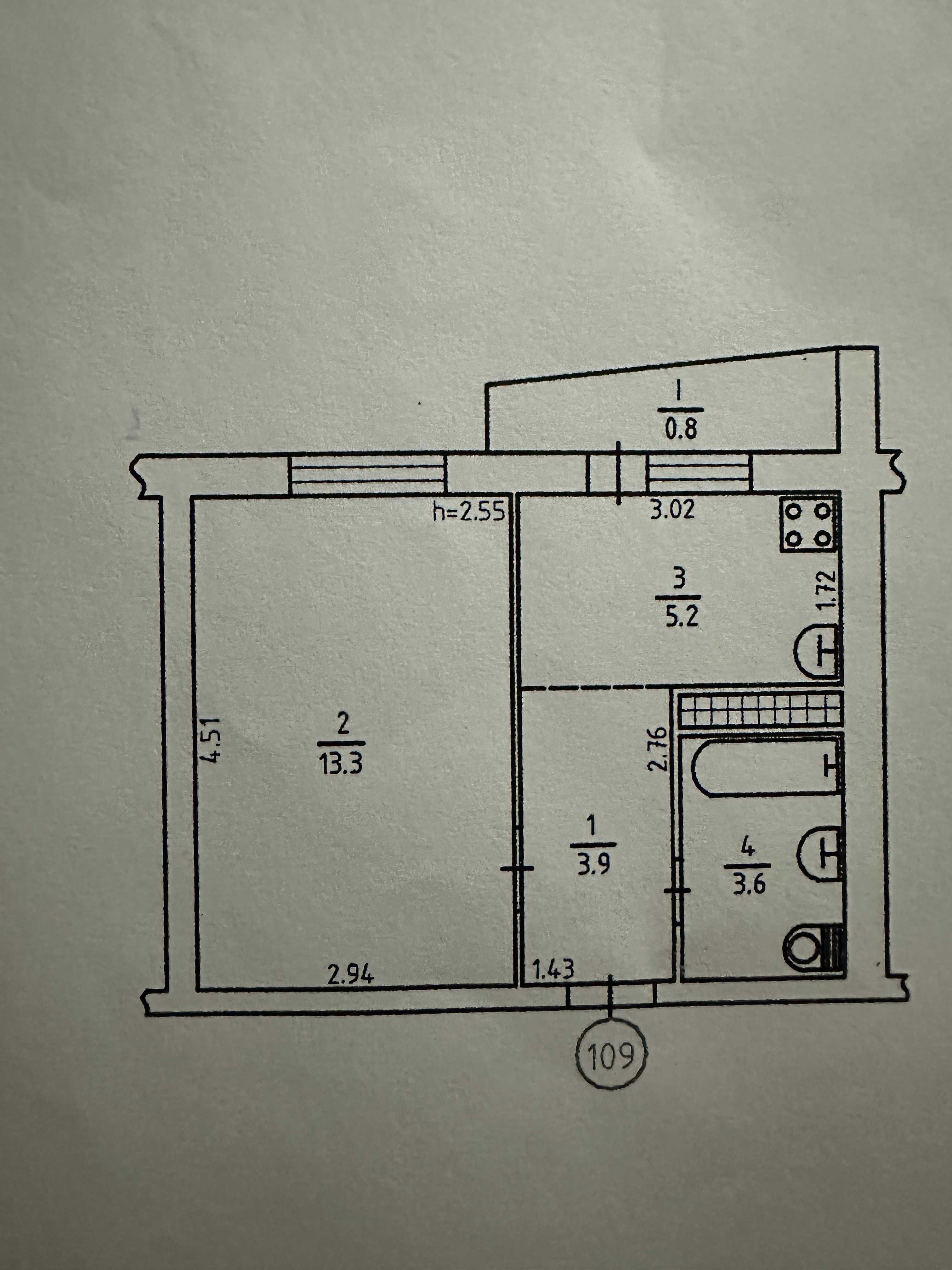 Площа, кв.м.:  29.1/16.9/5.4