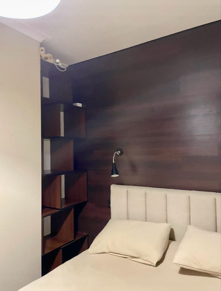 Квартира перепланована з однокімнатної у двокімнатну, що дозволило створити окрему спальню та комфортну вітальню.