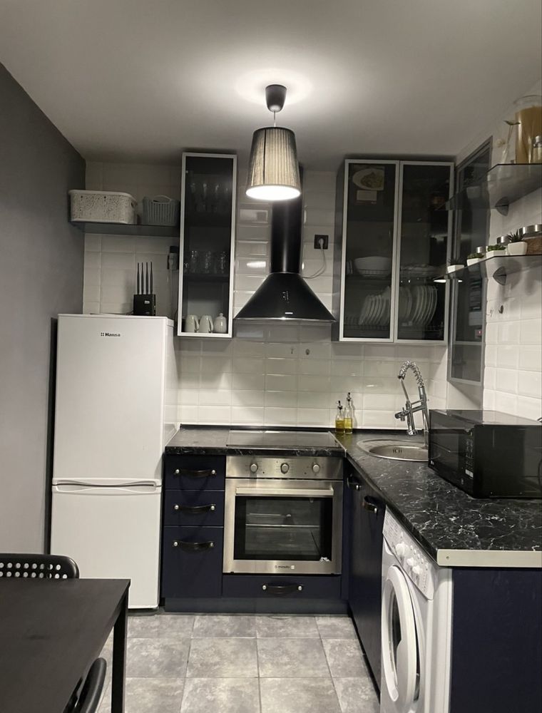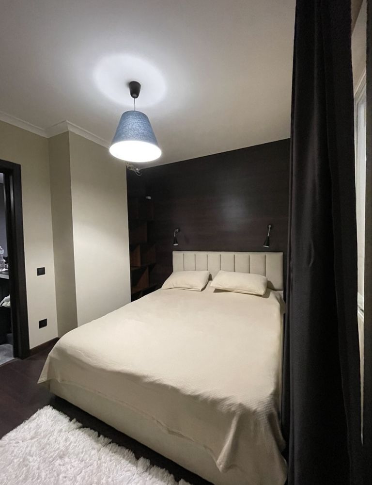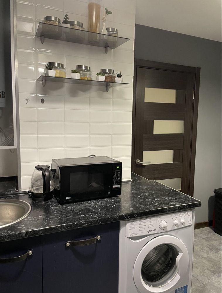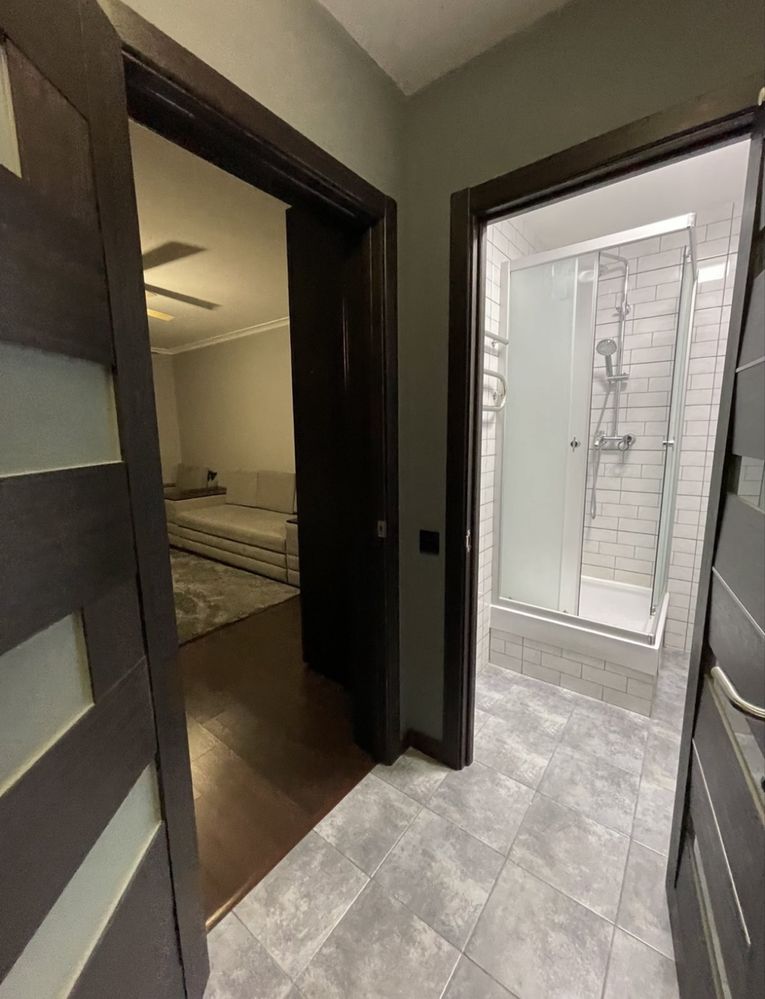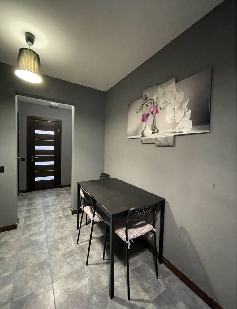 Ремонт виконано у сучасному стилі: на підлозі ламінат, санвузол із душовою повністю оздоблений плиткою, інтер’єр продуманий до деталей. Квартира мебльована стильними меблями, що робить її готовою до заселення без додаткових витрат.