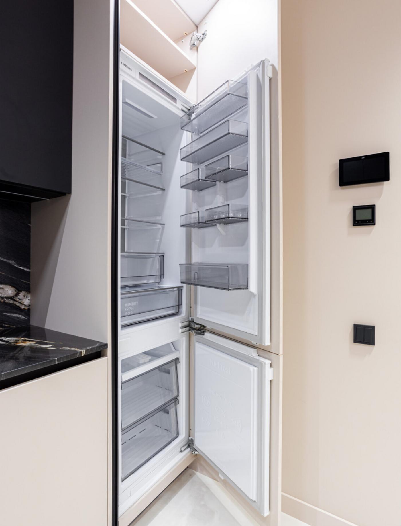 Оселя укомплектована технікою провідних брендів: Bosch (духовка, варильна поверхня, посудомийна машина), Samsung (вбудований холодильник No Frost), LG (прально-сушильна машина на 10 кг, телевізор OLED 65"), Haier (кондиціонер).